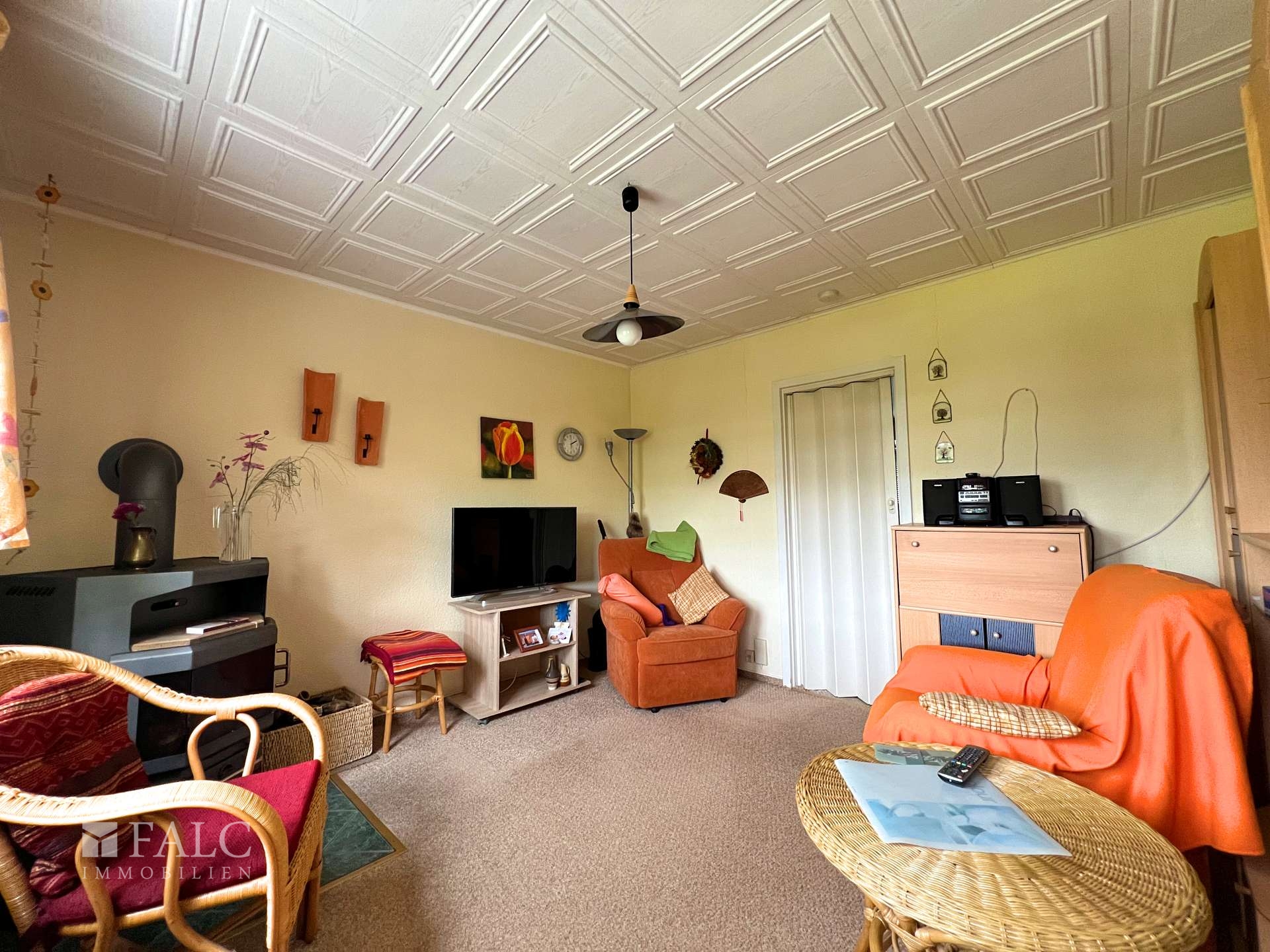 Im Inneren erwartet Sie ein offener, freundlicher Eingangsbereich mit integrierter Küche, der in den Wohnbereich übergeht. Das Wohnzimmer ist mit einem Kamin ausgestattet, der an kühlen Tagen angenehme Wärme spendet und dem Raum eine gemütliche Atmosphäre verleiht. Ein separates Schlafzimmer sowie ein kleines, funktionales Duschbad komplettieren das Wohnangebot.