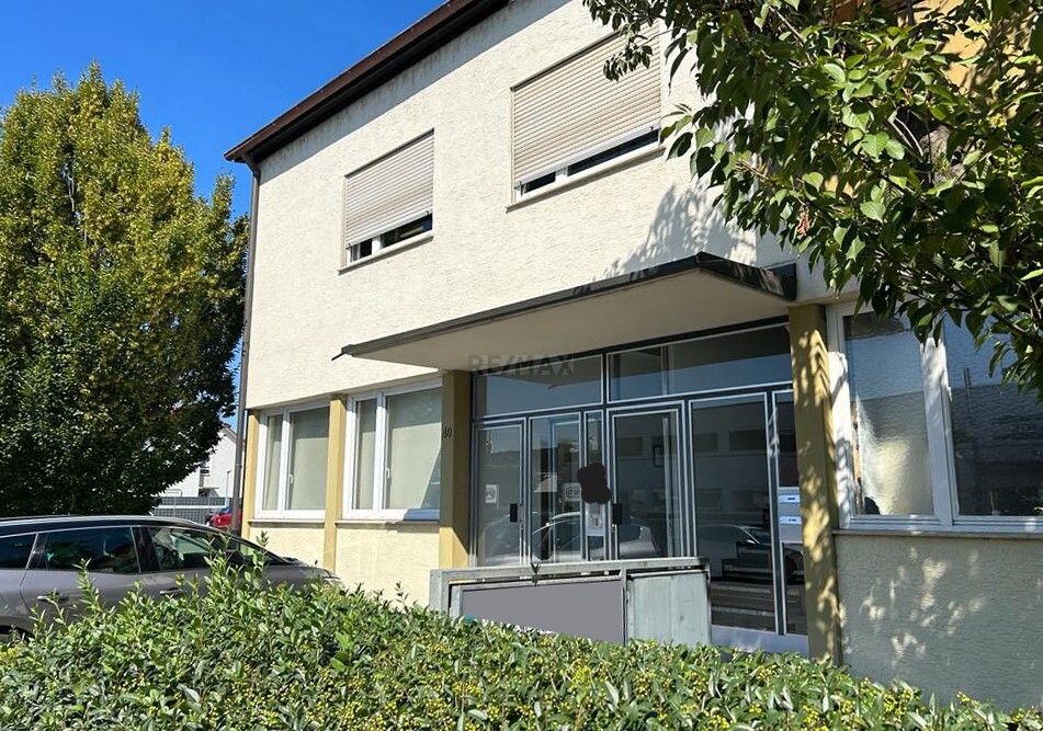 Die Immobilie umfasst eine großzügige Werkstatt/Ausstellungsfläche, mehrere Lagerräume, Umkleideräume und WC´s, sowie funktionale Büroräume – ergänzt durch eine geräumige 5-Zimmer-Wohnung im Obergeschoss.