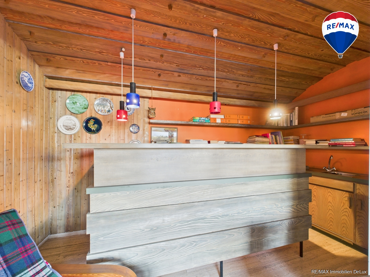 Im Erdgeschoss befinden sich im hinteren Bereich zwei Kellerräume, die zusätzlichen Stauraum und Platz für Waschmaschine und Trockner bieten. Der rechte Teil des Erdgeschosses dient der Freizeitgestaltung und Erholung: Ein stilvolles Barzimmer mit eingebauter Theke lädt zu gemütlichen Stunden ein, während der Flur Sie direkt zum innenliegenden Pool führt, der von verschiedenen Nebenräumen, WCs und Badezimmern ergänzt wird. Der linke Bereich des Erdgeschosses verfügt über ein geräumiges Büro oder Gästezimmer im vorderen Teil. Dahinter liegen der Technikraum mit der Heizung (sowie der Platz der früheren Poolpumpe) und ein praktischer Werkstattraum, der zusätzlich über einen separaten Ausgang nach außen verfügt.