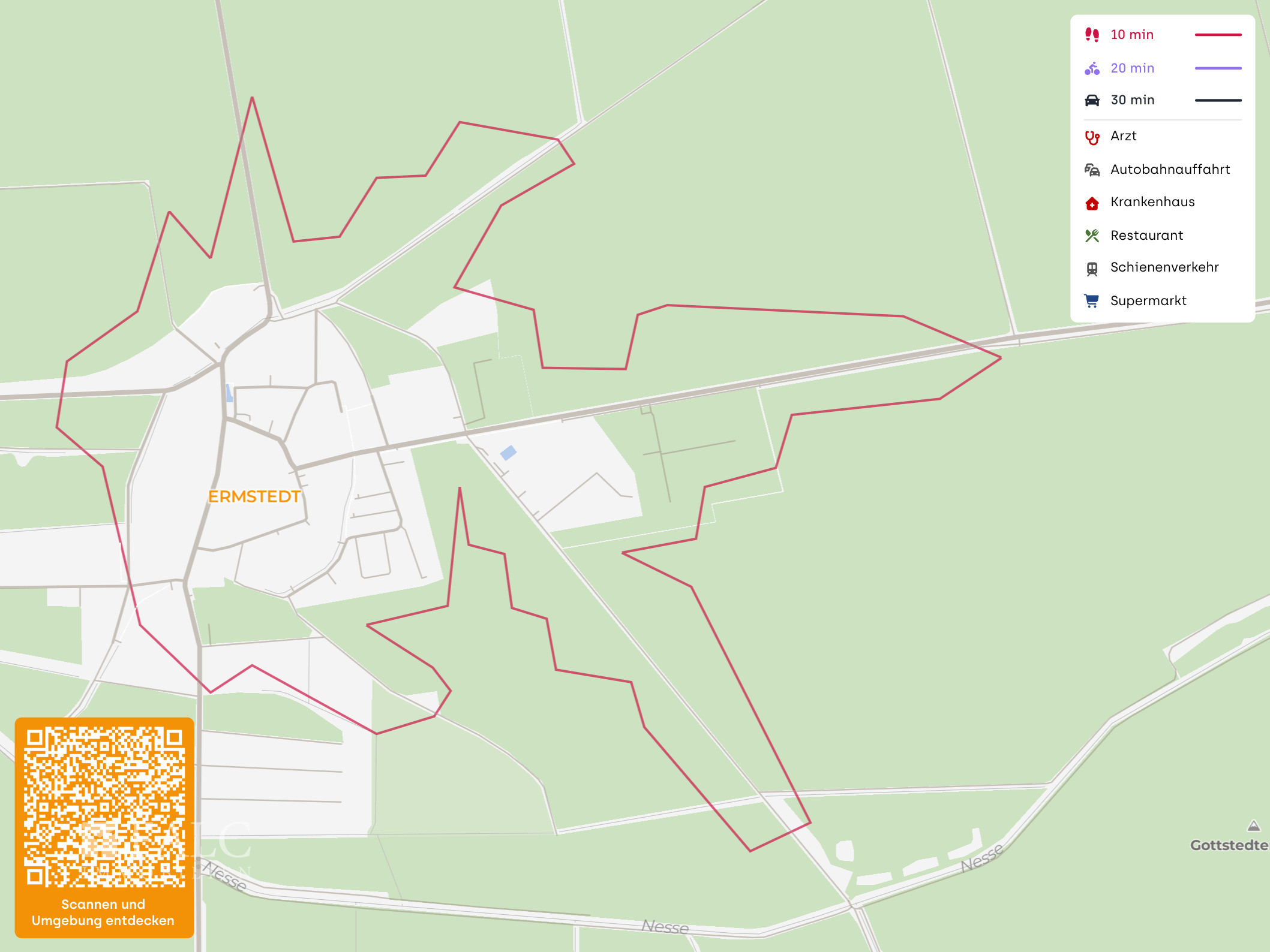 Eine Bushaltestelle liegt fußläufig in ca. 200 m, die Haltestelle Ortsmitte Ermstedt in ca. 500 m Entfernung. Damit ist eine gute Verbindung Richtung Erfurt und Gotha mit dem öffentlichen Nahverkehr gewährleistet.