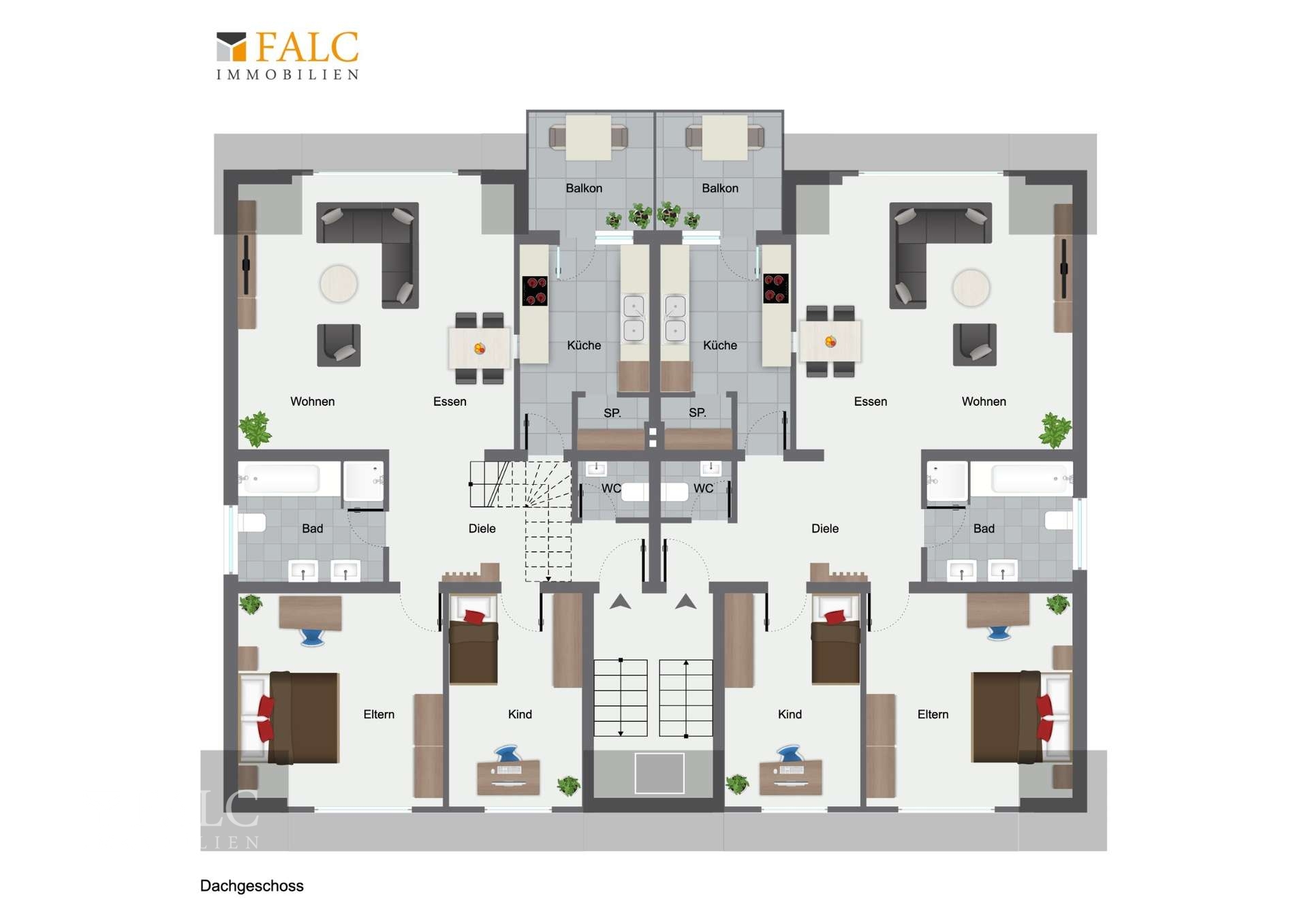 Weitere zwei Wohnungen weisen jeweils eine Wohnfläche von ca. 88 m² auf. Sie verfügen ebenfalls über eine Küche, Diele, ein Tageslichtbad, ein separates Gäste-WC, ein Wohnzimmer, ein Schlafzimmer, ein Kinderzimmer sowie einen großen Balkon. Zusätzlich bieten diese beiden Einheiten ein ausgebautes Dachgeschoss mit einer Nutzfläche von jeweils ca. 35 m², das aktuell nicht zur Wohnfläche gerechnet wird. Dieser zusätzliche Raum lässt sich flexibel nutzen – zum Beispiel als Arbeitszimmer, Hobbybereich oder erweiterten Wohnraum – und erhöht langfristig die Attraktivität der Wohnungen.