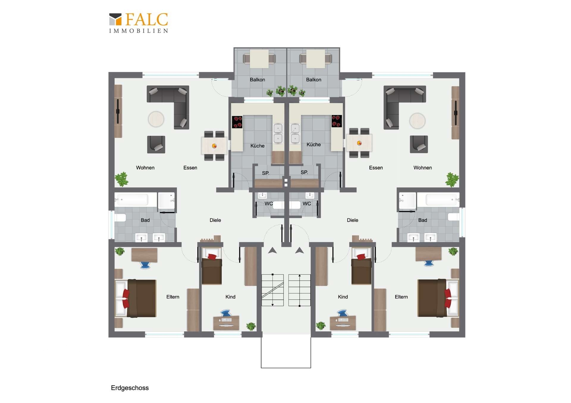 Zwei der Wohnungen verfügen jeweils über ca. 92 m² Wohnfläche und bestehen aus einer Küche, einer zentralen Diele, einem Tageslichtbad, einem separaten Gäste-WC, einem Wohnzimmer, einem Schlafzimmer, einem Kinderzimmer sowie einem großen, sonnigen Balkon. Die Aufteilung ist funktional und entspricht den Anforderungen an modernen Wohnraum, was sich positiv auf die Vermietbarkeit auswirkt.