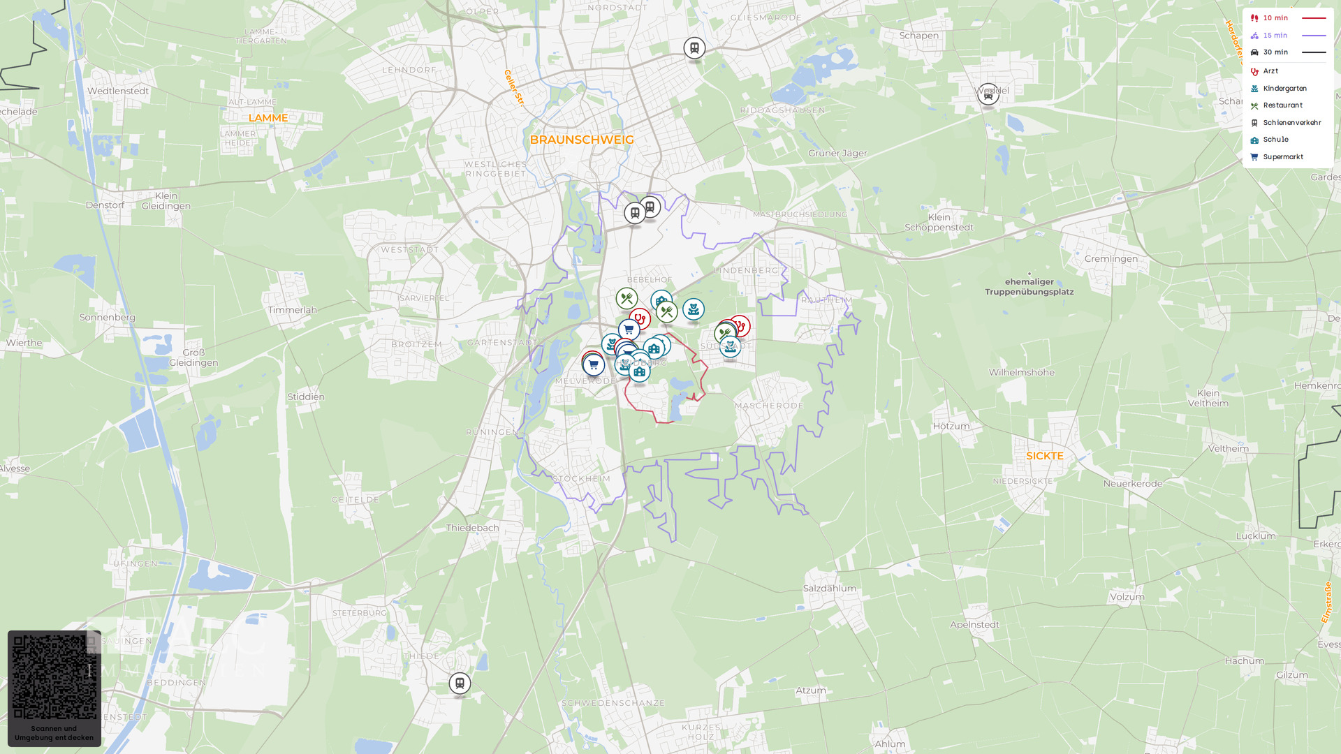 Die Anbindung ist komfortabel: Bushaltestellen wie Erfurtplatz und Dresdenstraße erreichen Sie in ca. 5 bis 10 Minuten zu Fuß. Der Braunschweig Hauptbahnhof liegt in ca. 3 km Entfernung und ist damit gut erreichbar. Mit dem Auto sind die überregionalen Verkehrsachsen zügig angebunden, und auch der Flughafen Braunschweig Wolfsburg ist in ca. 20 bis 30 Minuten erreichbar.