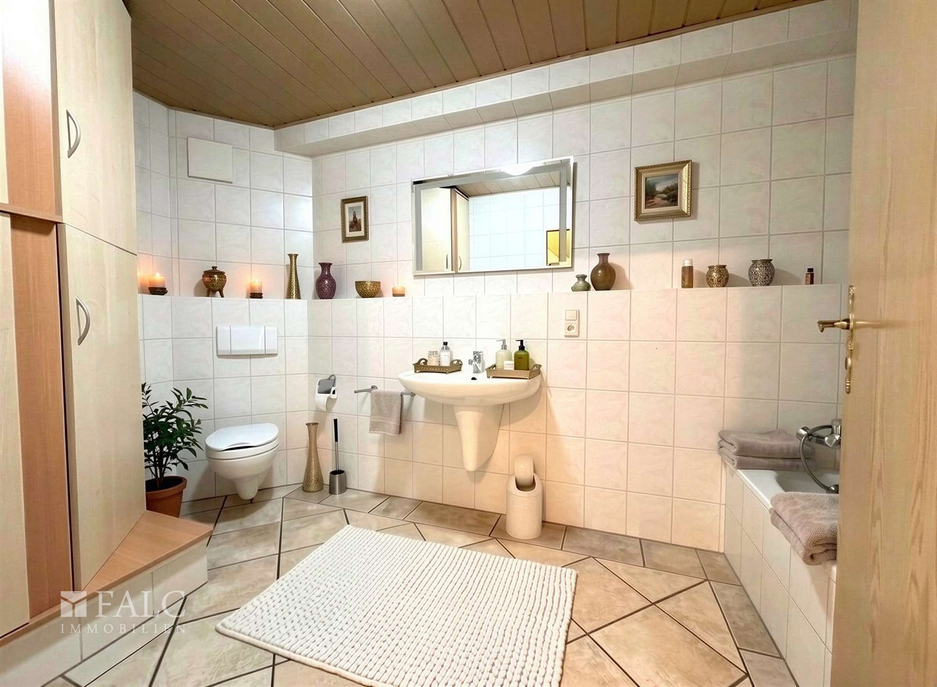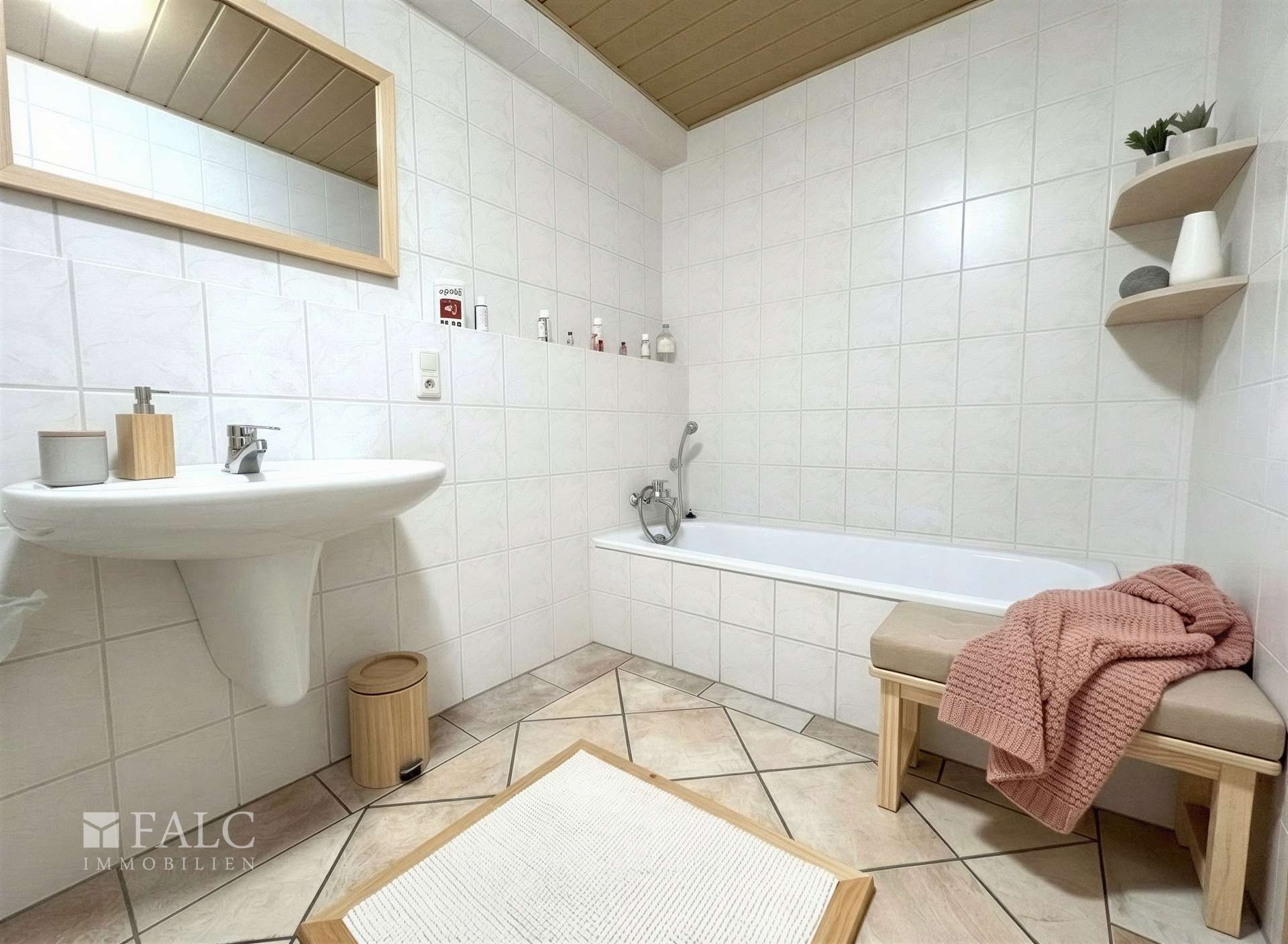 Komfort wird hier großgeschrieben: Die Wohnung ist mit Rollläden ausgestattet, die für eine angenehme Verdunkelung und zusätzliche Wärmedämmung sorgen. Das großzügige Badezimmer beeindruckt mit einer hochwertigen, deckenhohen Verfliesung und verleiht dem Raum eine moderne und pflegeleichte Optik.