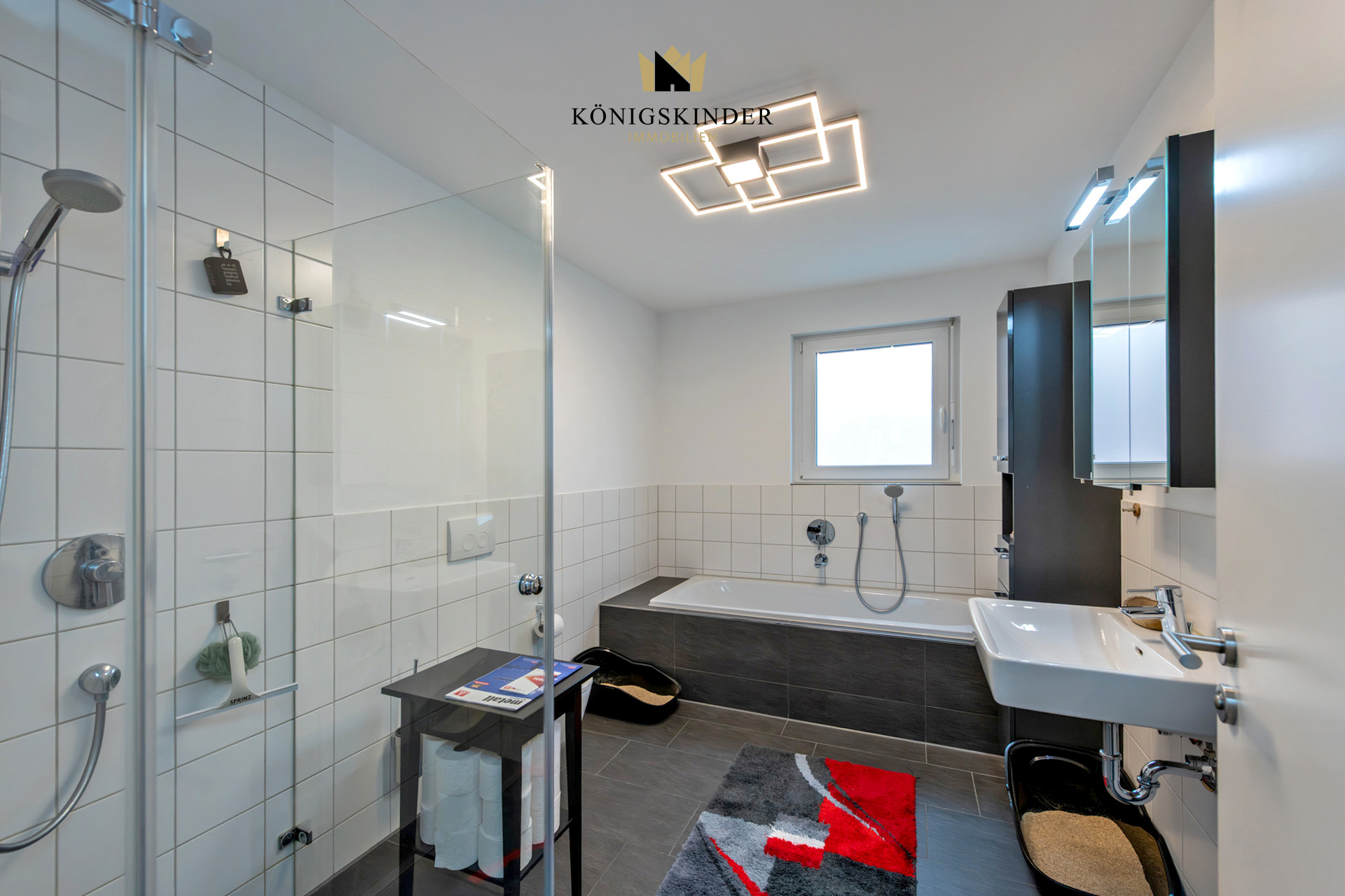 Die Bäder sind mit weißer Marken‑Sanitärkeramik, Einhebel‑Armaturen in Chrom, Badewanne, gefliester Dusche und wandhängendem WC ausgestattet und präsentieren sich hell, pflegeleicht und zeitlos modern. Das Treppenhaus mit Granit‑ bzw. Werksteinstufen, LED‑Beleuchtung und einer klaren, wertigen Gestaltung vermittelt bereits beim Betreten des Hauses einen sehr gepflegten Eindruck. Balkone und Terrassen in Betonkonstruktion mit hochwertigen Belägen sowie die liebevoll angelegten Außenanlagen mit Rasen, Bepflanzung, Stützwänden und befestigten Wegen erweitern den Wohnraum ins Freie; ein eigener Wasseranschluss zur Gartenbewässerung ist vorhanden.