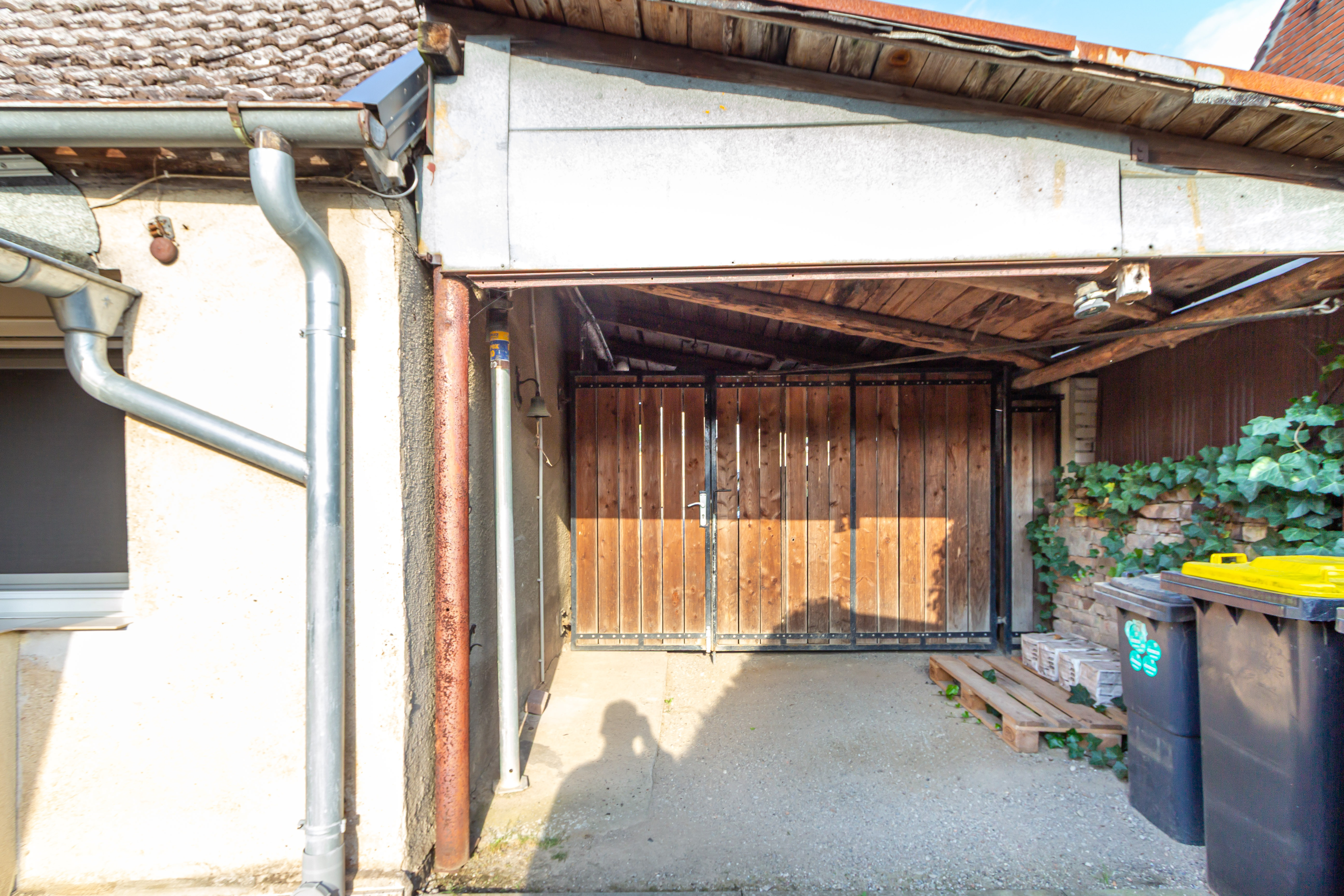 Ein Geräteschuppen bietet Abstell- und Lagermöglichkeiten. Der gepflasterte Innenhof rundet das Angebot ab und lädt zu geselligen Stunden im Freien ein.