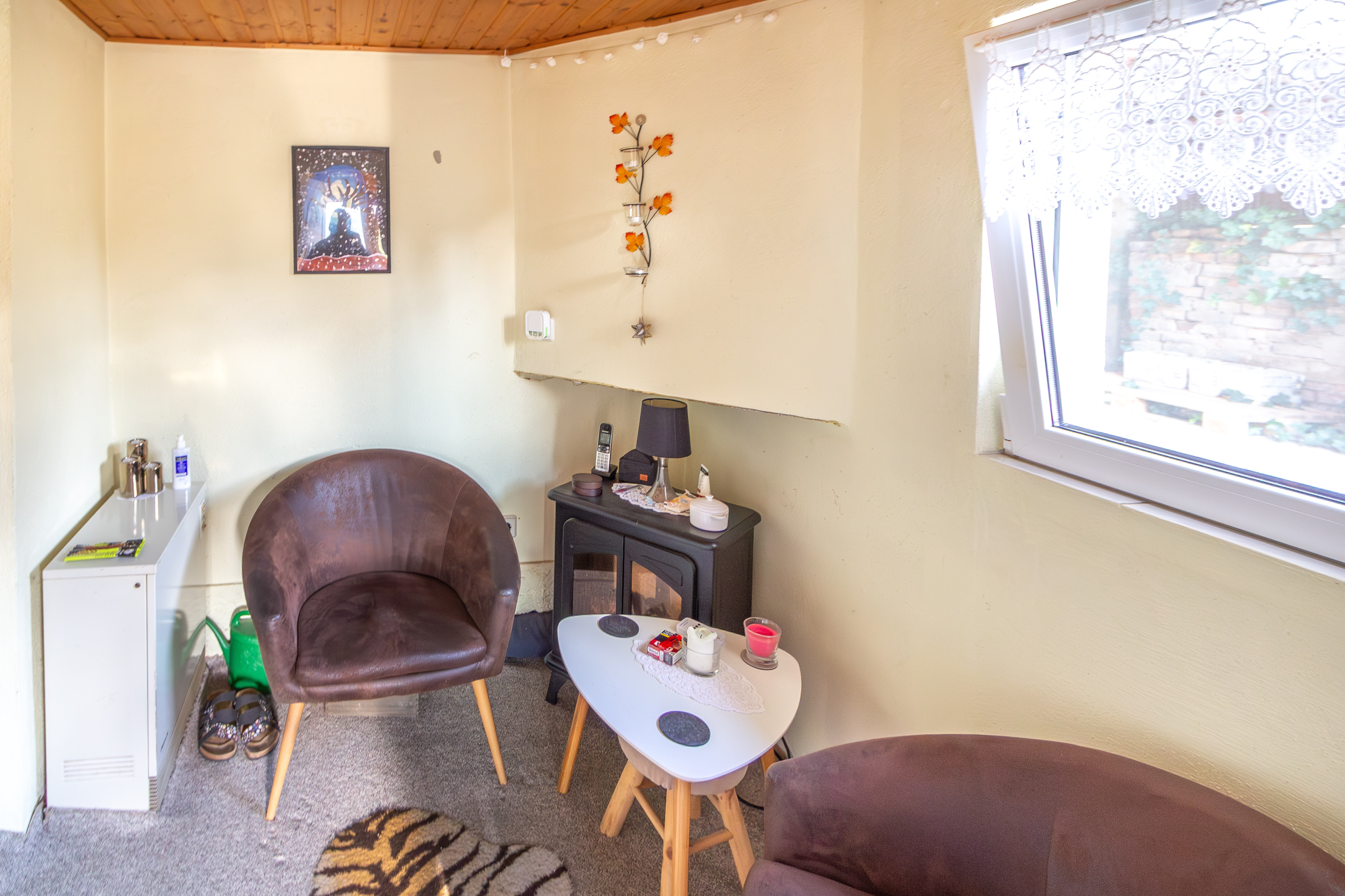 Nebengebäude: Umfangreiche Nutzungsmöglichkeiten bietet Ihnen das massive Nebengebäude. Der ca.40 m² große Partyraum wird über einen Kaminofen beheizt. Eine Hochterrasse in Süd-West-Ausrichtung bietet Ihnen einen wunderschönen Blick in die Natur. Für das Nebengebäude und die Terrasse besteht noch Modernisierungsbedarf.