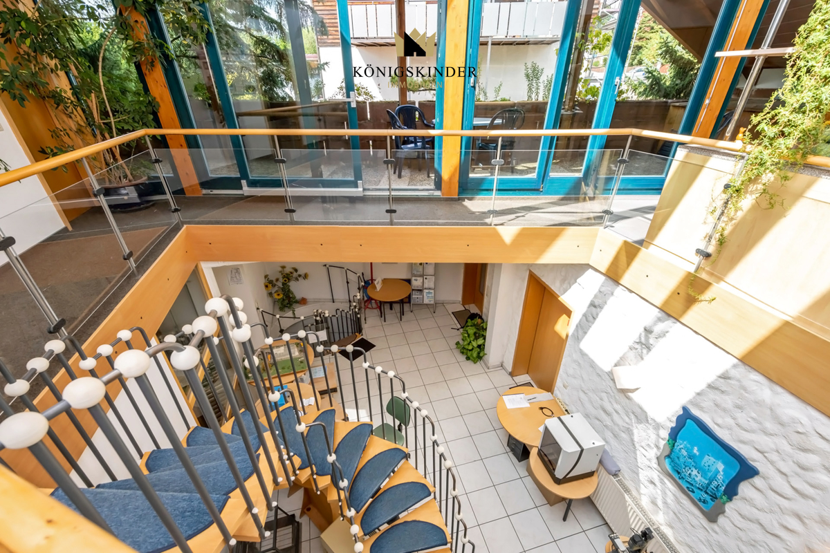 Wohnung/Büro (Obergeschoss): Aktuell als 4-Zimmer-Büro genutzt, mit beeindruckender Dachterrasse (143 m²). Eine Umnutzung zu offenem, hellem Wohnraum ist denkbar. Auch eine gewerbliche Nutzung mit Vermietung bleibt eine attraktive Option.