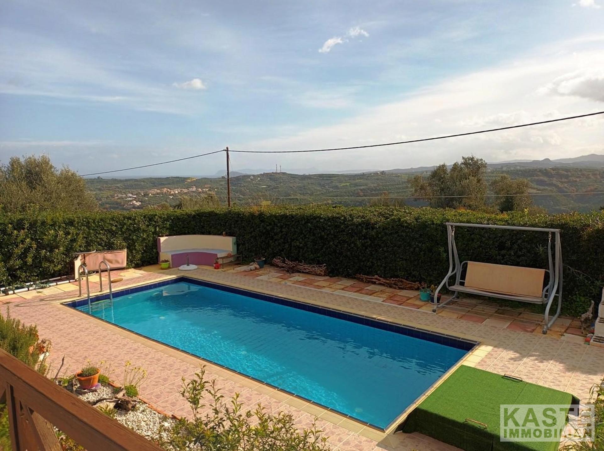 Die gepflegte Villa befindet sich in einem ruhigen Dorf auf Kreta. Es überzeugt durch einen schönen Blick auf die Berge und das Meer. Ausgestattet ist es mit einem Wohnbereich, einer Küche, drei Badezimmern und vier Schlafzimmern. Außerdem gibt es einen Abstellraum, eine Zentralheizung und eine Klimaanlage. Im Außenbereich können Sie die Sonne am Pool oder auf der Terrasse hinter dem Haus genießen. Am Kamin im Wohnbereich können Sie den Abend ausklingen lassen.