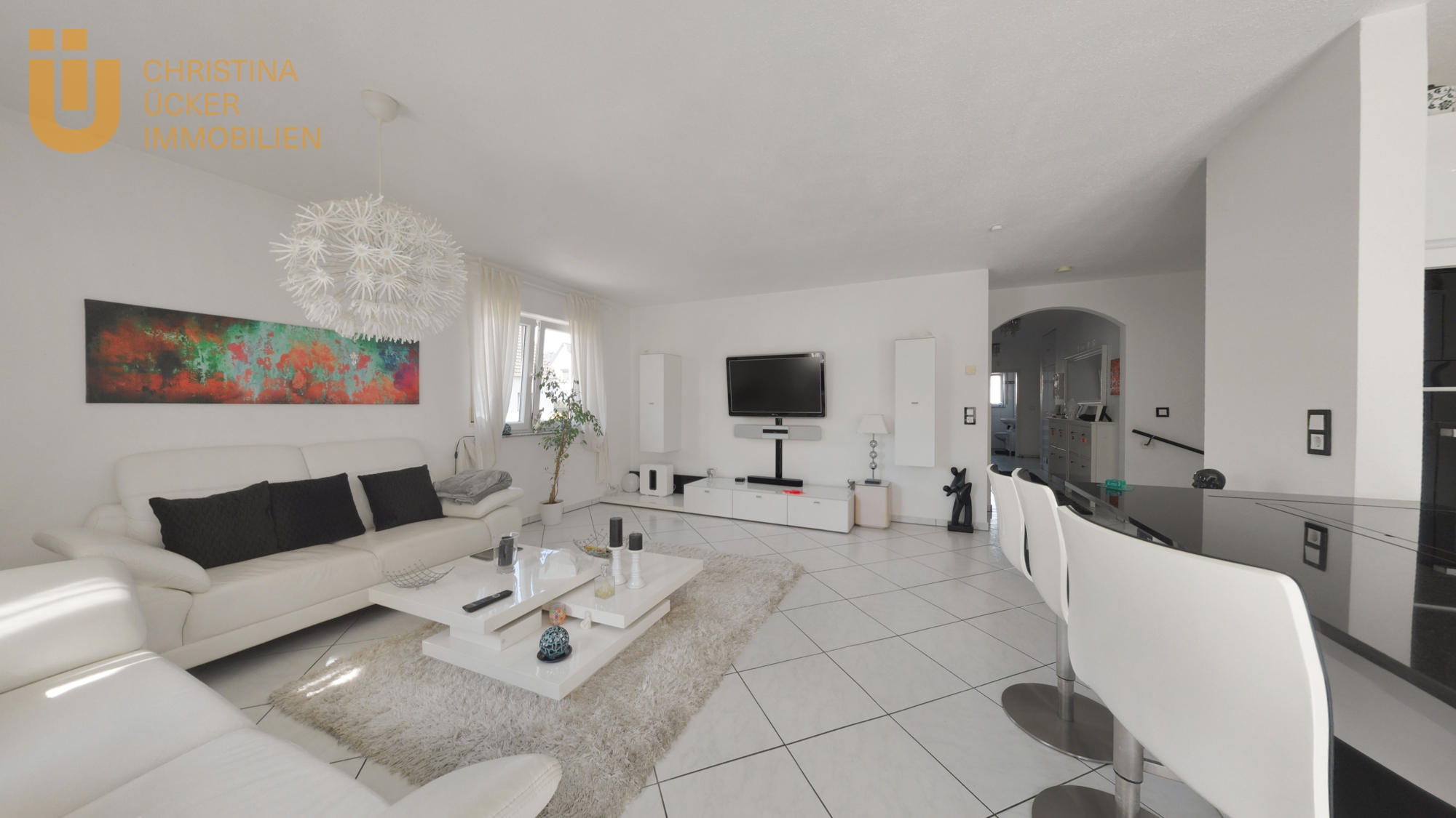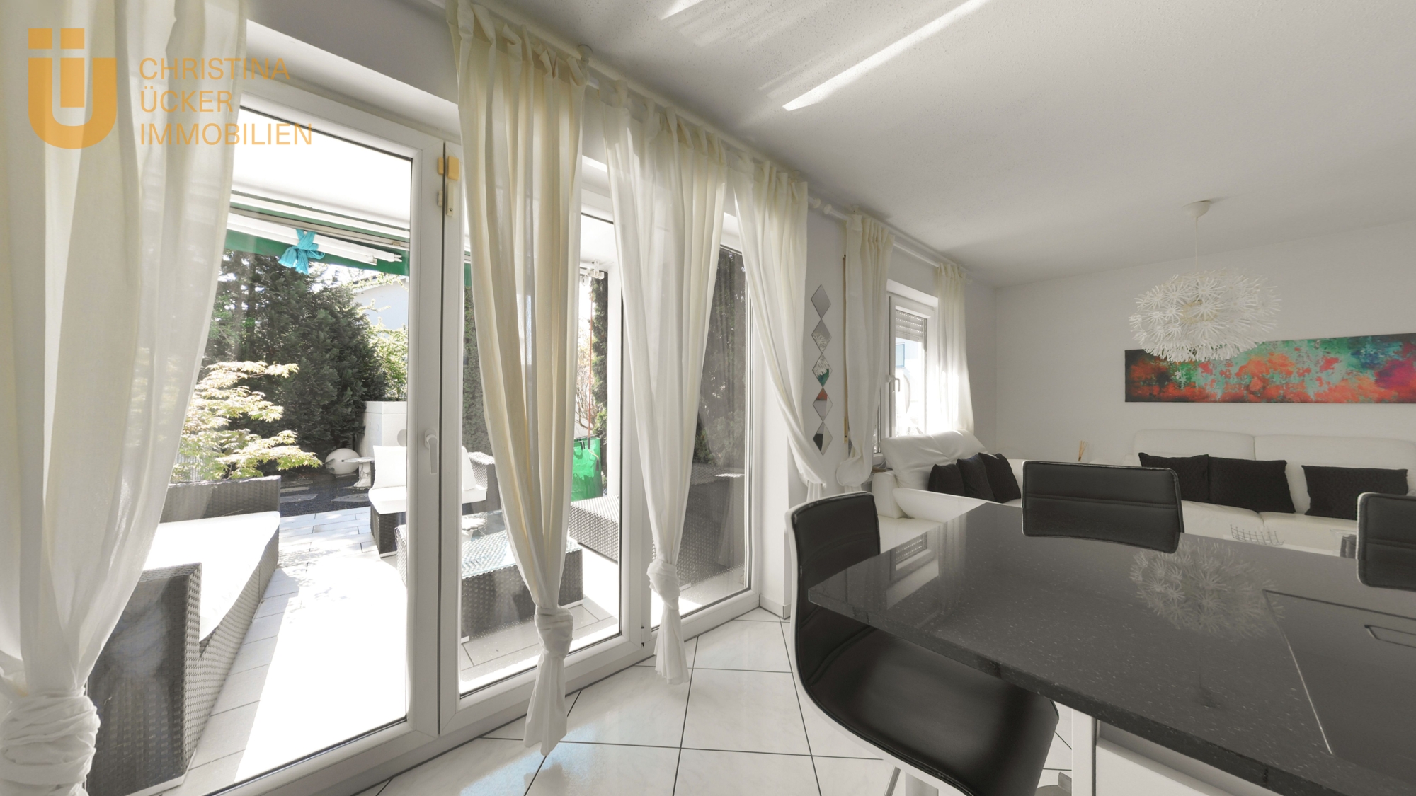 Das Herzstück der Wohnung bildet der großzügige Wohn- und Essbereich mit offener, moderner Einbauküche aus dem Jahr 2021. Von hier aus haben Sie direkten Zugang zur Terrasse sowie in den angrenzenden, kleinen Garten. Ideal zum Entspannen und Genießen.