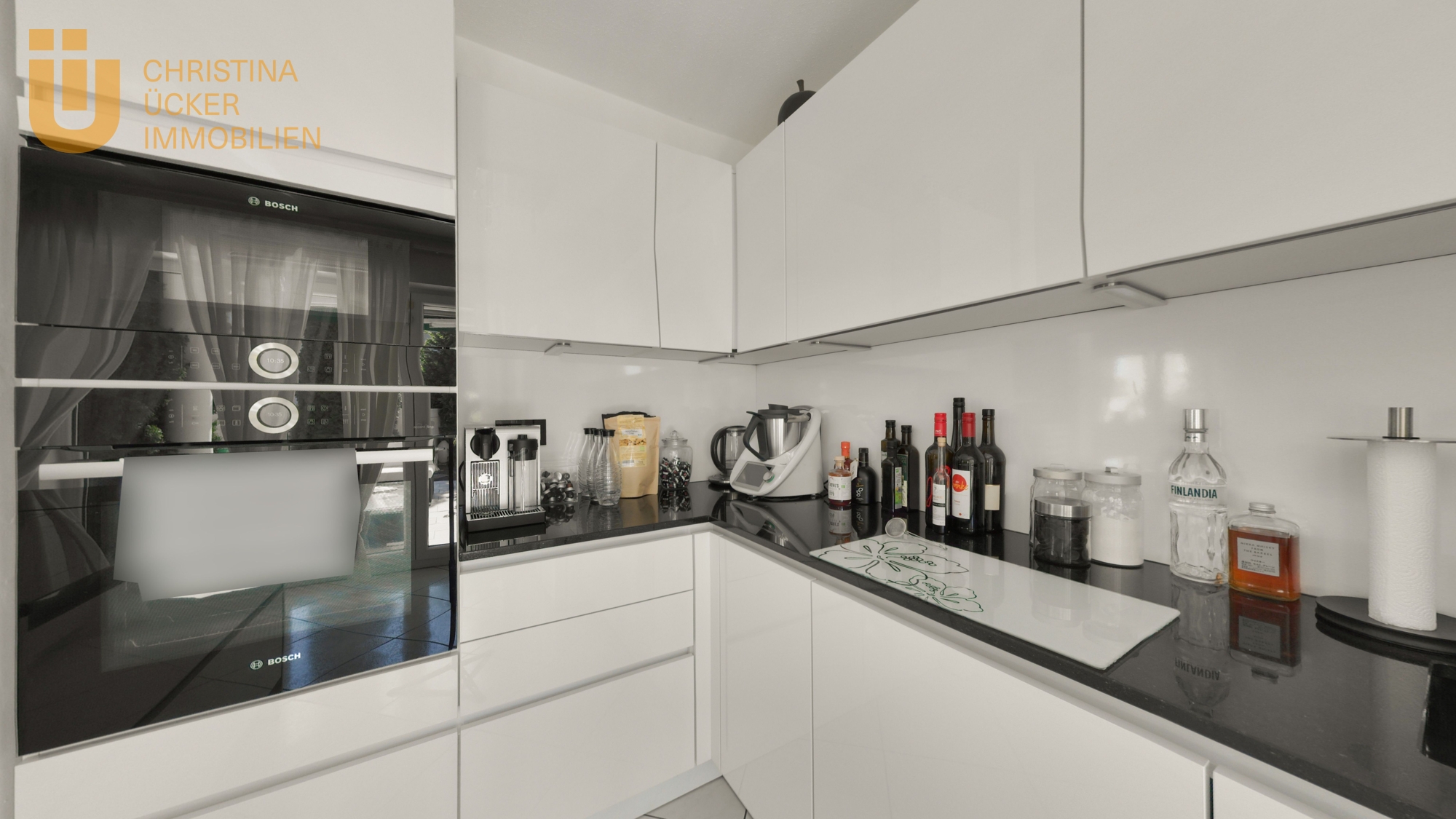 - Einbauküche: Vorhanden - Site by Side Kühlschrank - Panasonic, Eiswürfel, Spülmaschine Miele, Induktionsherd groß mit Abzug in der Mitte, Mikrowelle, Backofen, Granit Arbeitsplatte