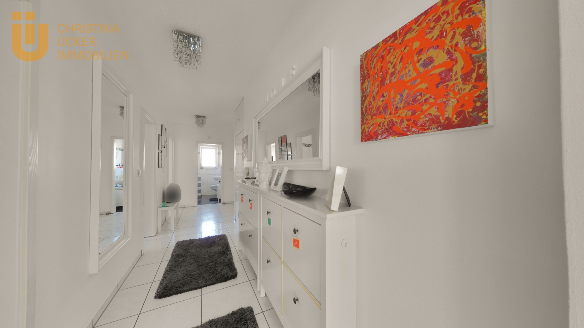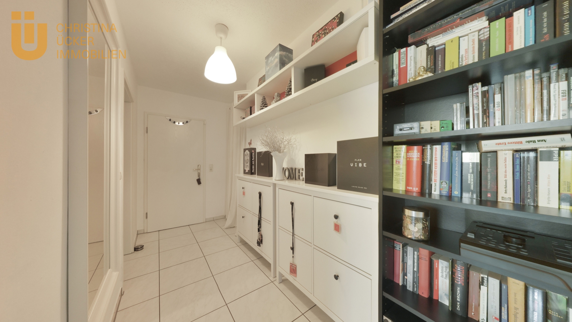 Beim Betreten der Wohnung gelangt man in einen länglichen Flur, der harmonisch in den offenen und lichtdurchfluteten Wohnbereich übergeht. Direkt rechts befindet sich ein Gäste-WC mit Tageslicht.