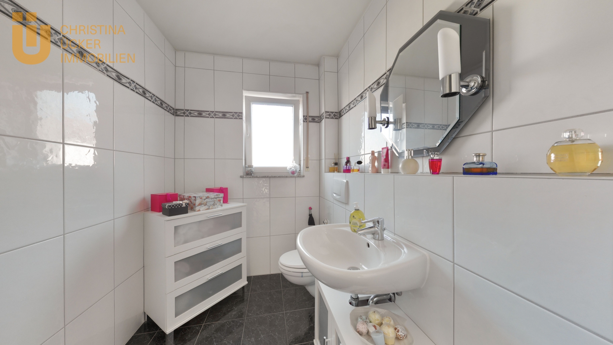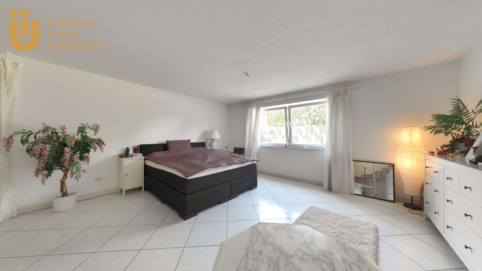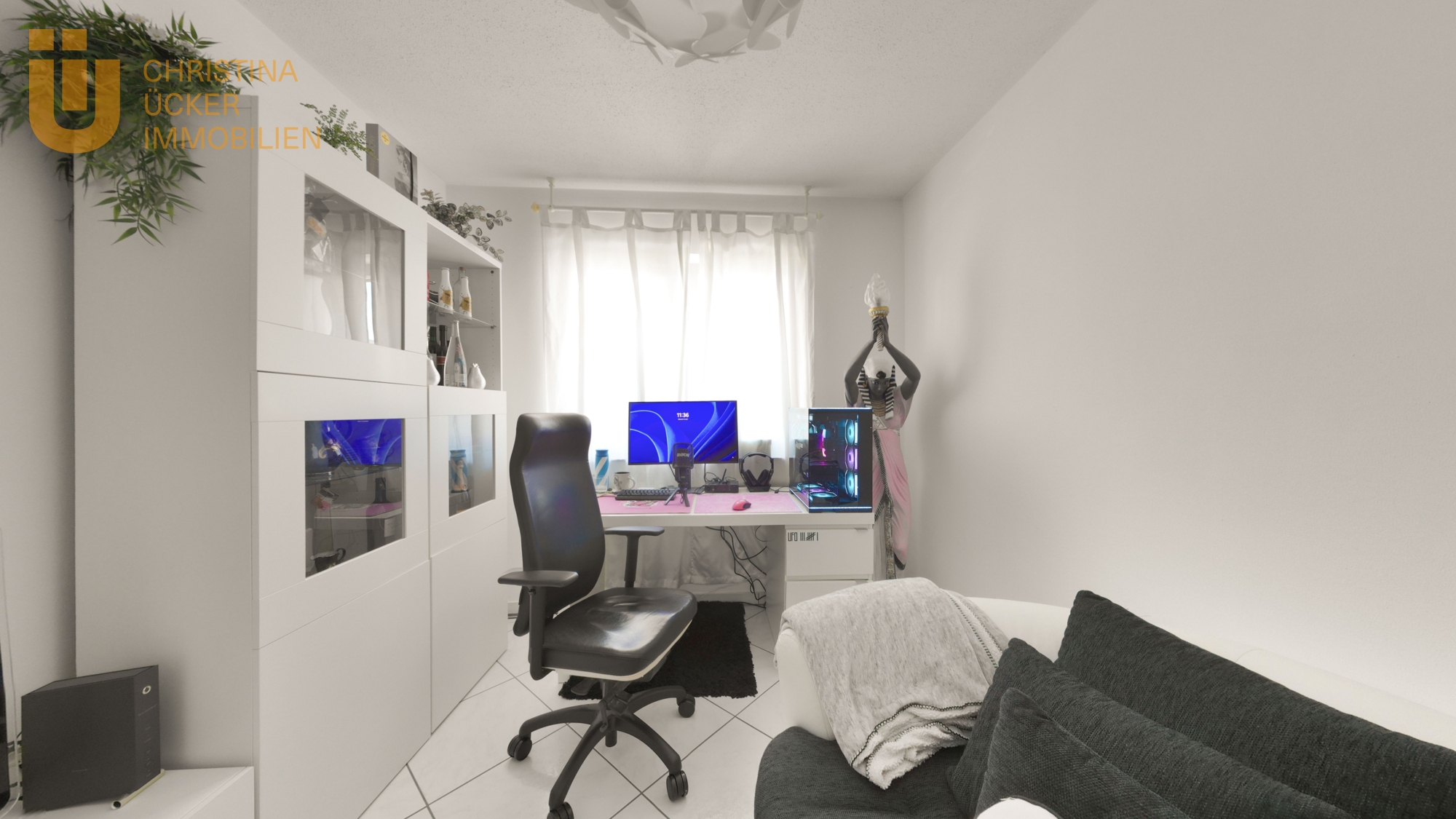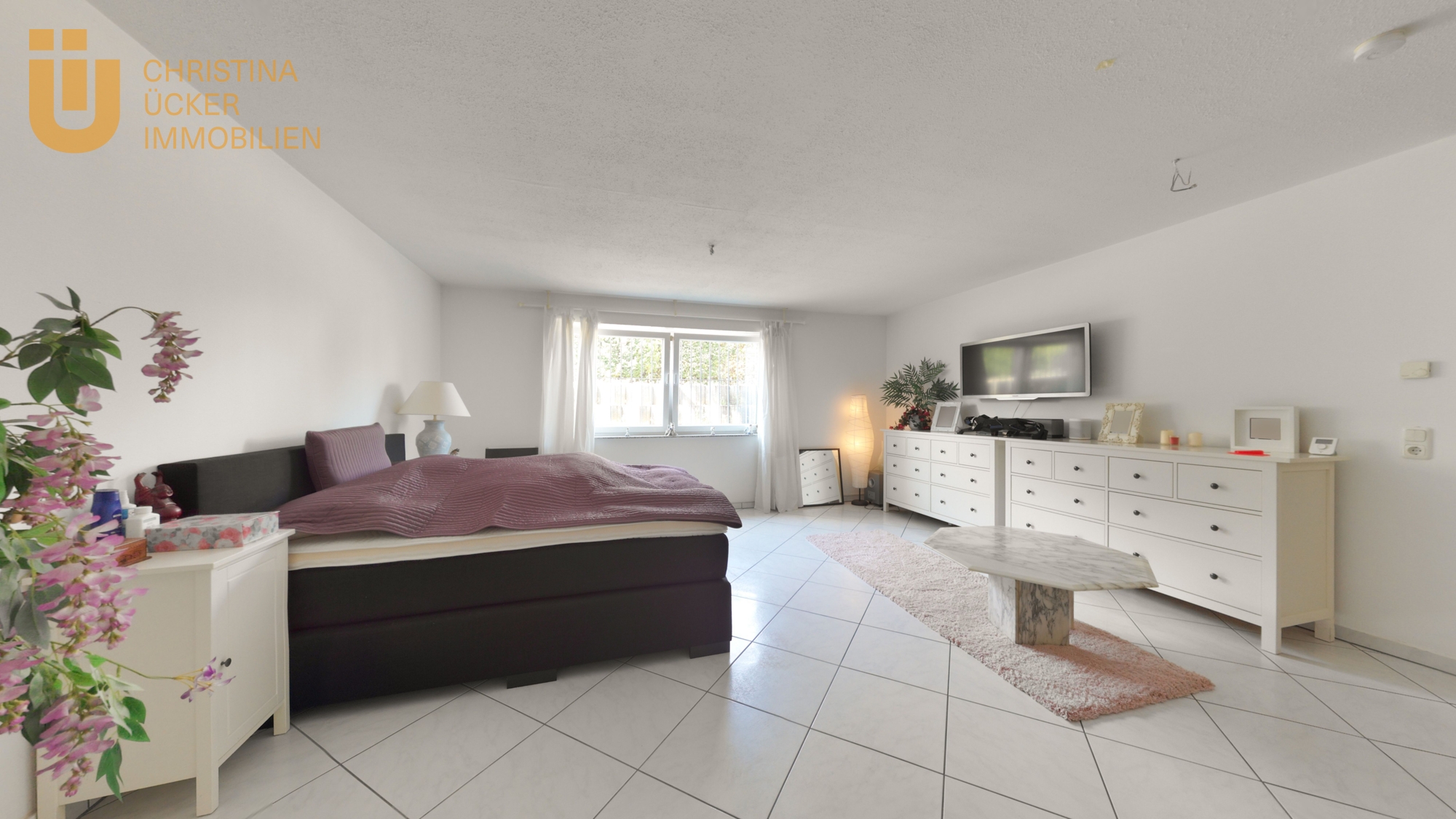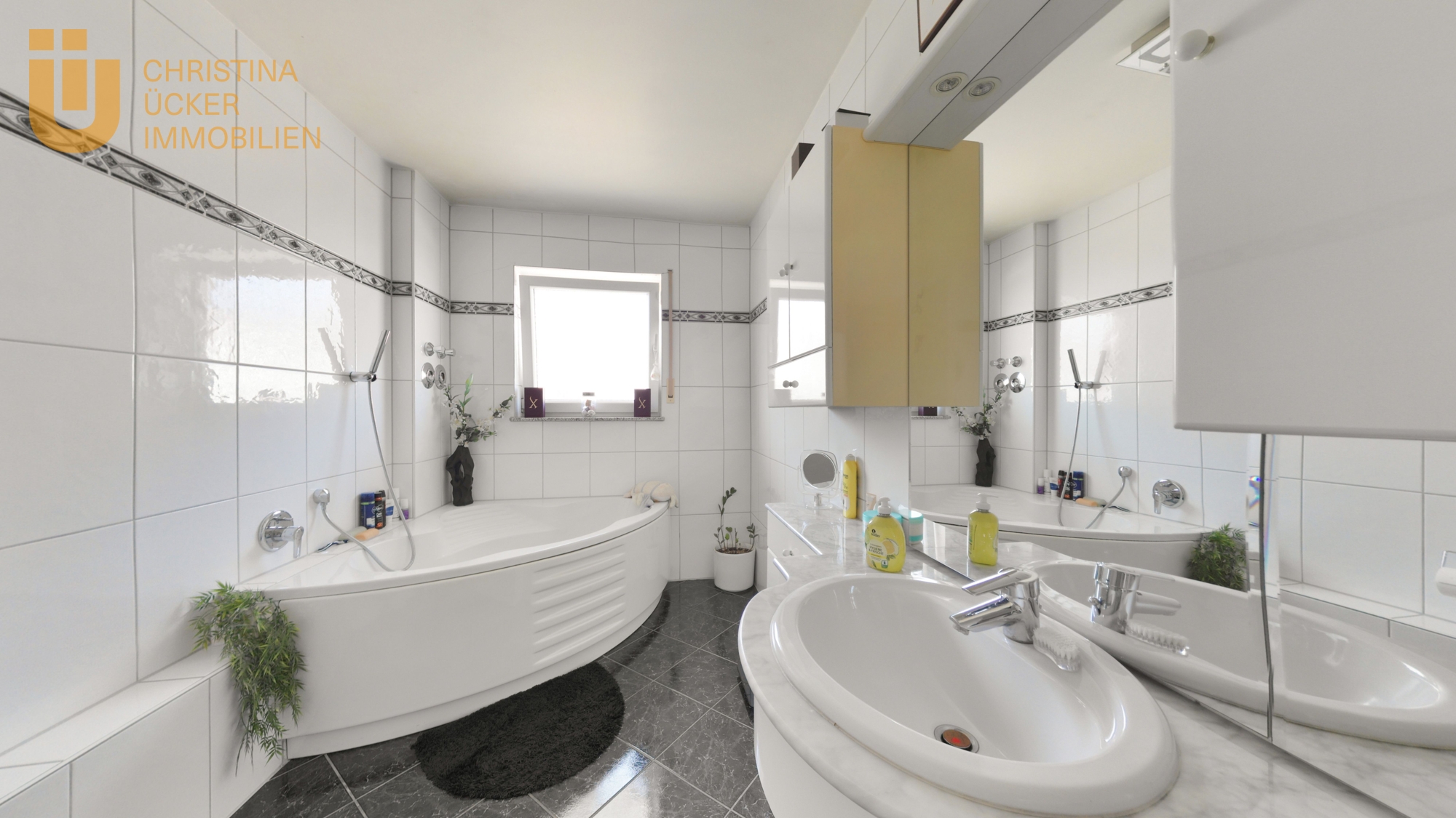 Gegenüber der Eingangstür liegt das großzügige Schlafzimmer. Angrenzend befinden sich das helle Hauptbadezimmer, ausgestattet mit einer Eckbadewanne, separater Dusche und Fenster sowie ein weiteres Zimmer, das sich ideal als Büro, Kinder- oder Gästezimmer nutzen lässt.