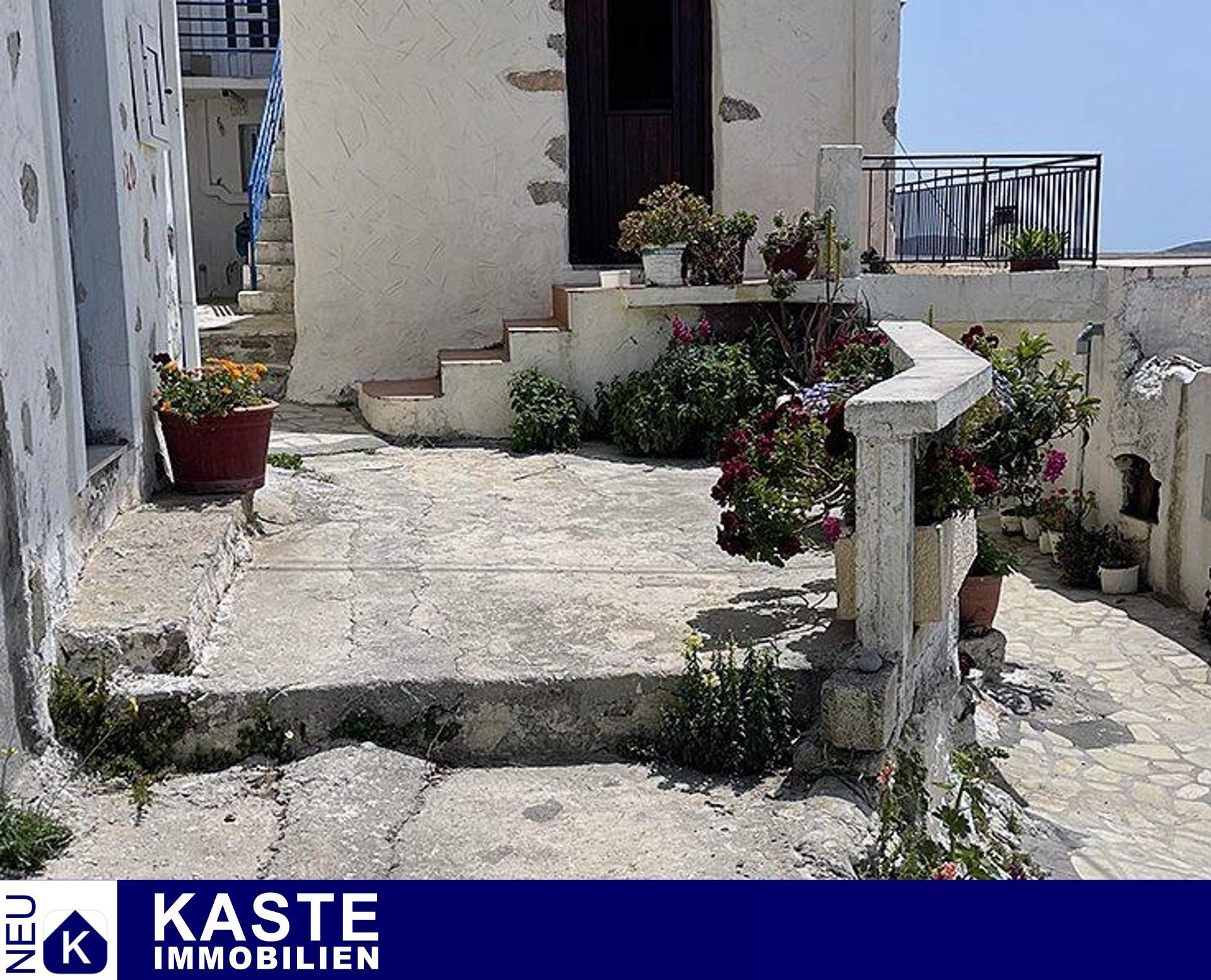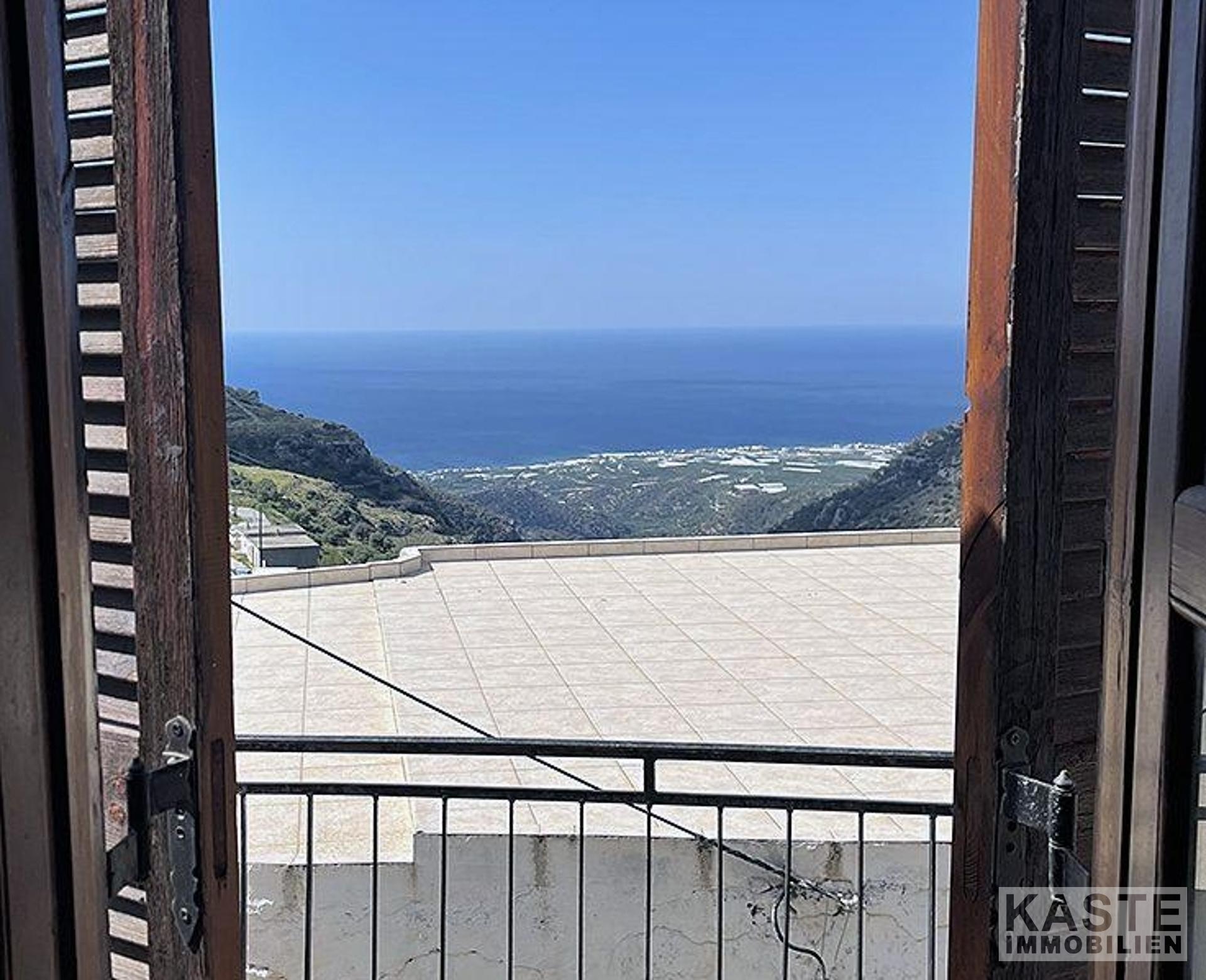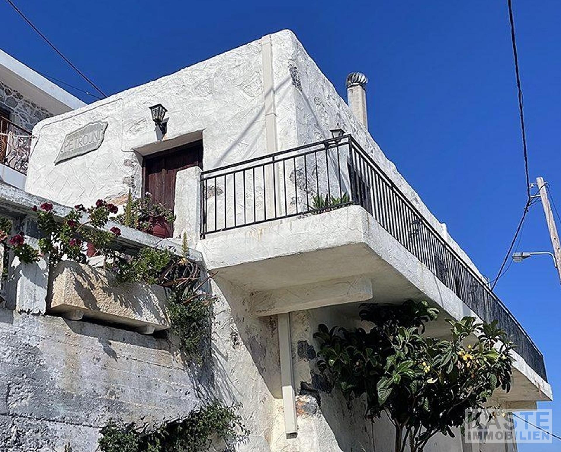 Ein malerischer Balkon erstreckt sich entlang der Fassade und bietet die ideale Kulisse, um an lauen kretischen Abenden im Freien zu verweilen und den zauberhaften Ausblick auf das Dorf zu genießen.