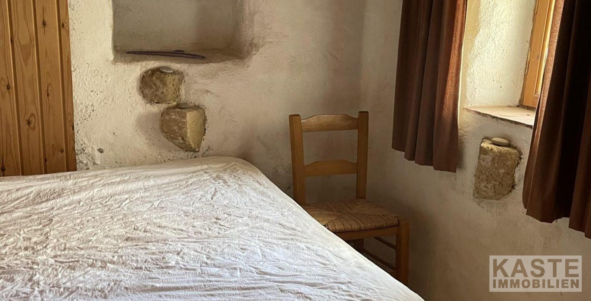 Die charaktervolle Gestaltung des Hauses vereint gekonnt traditionellen kretischen Stil mit zeitgemäßen Akzenten. Die prächtigen Holztüren, die authentischen Steinwände und die sichtbaren Holzbalken tragen maßgeblich zum einzigartigen Charme des Anwesens bei.