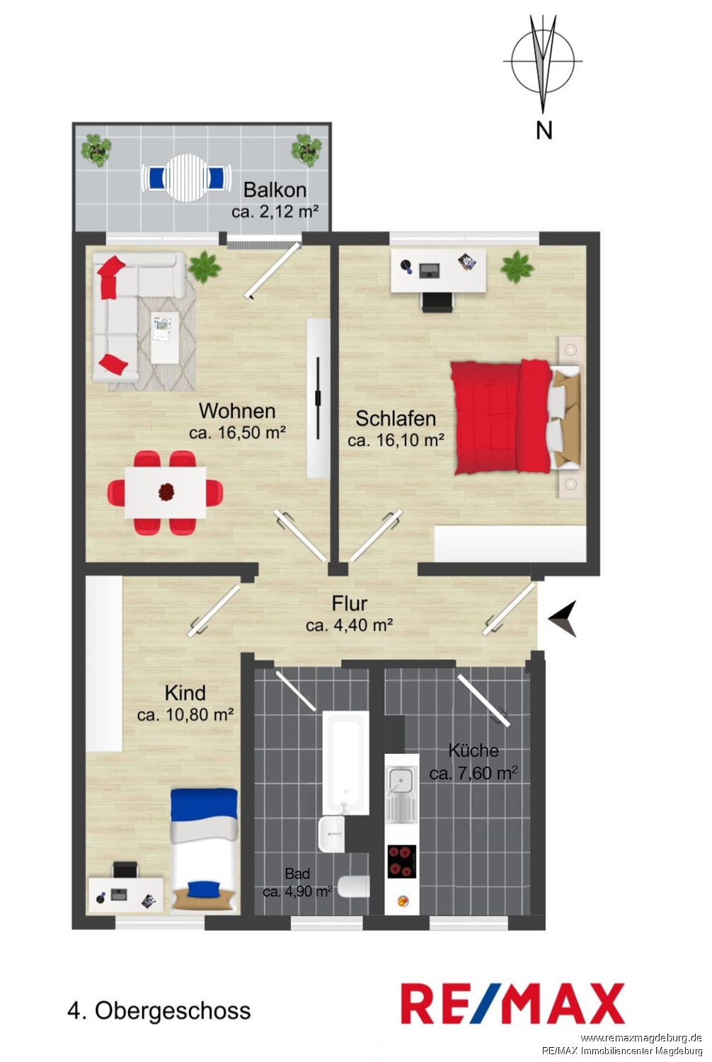 Die 3-Raum-Wohnung im 4. Obergeschoss ist wie folgt aufgeteilt: