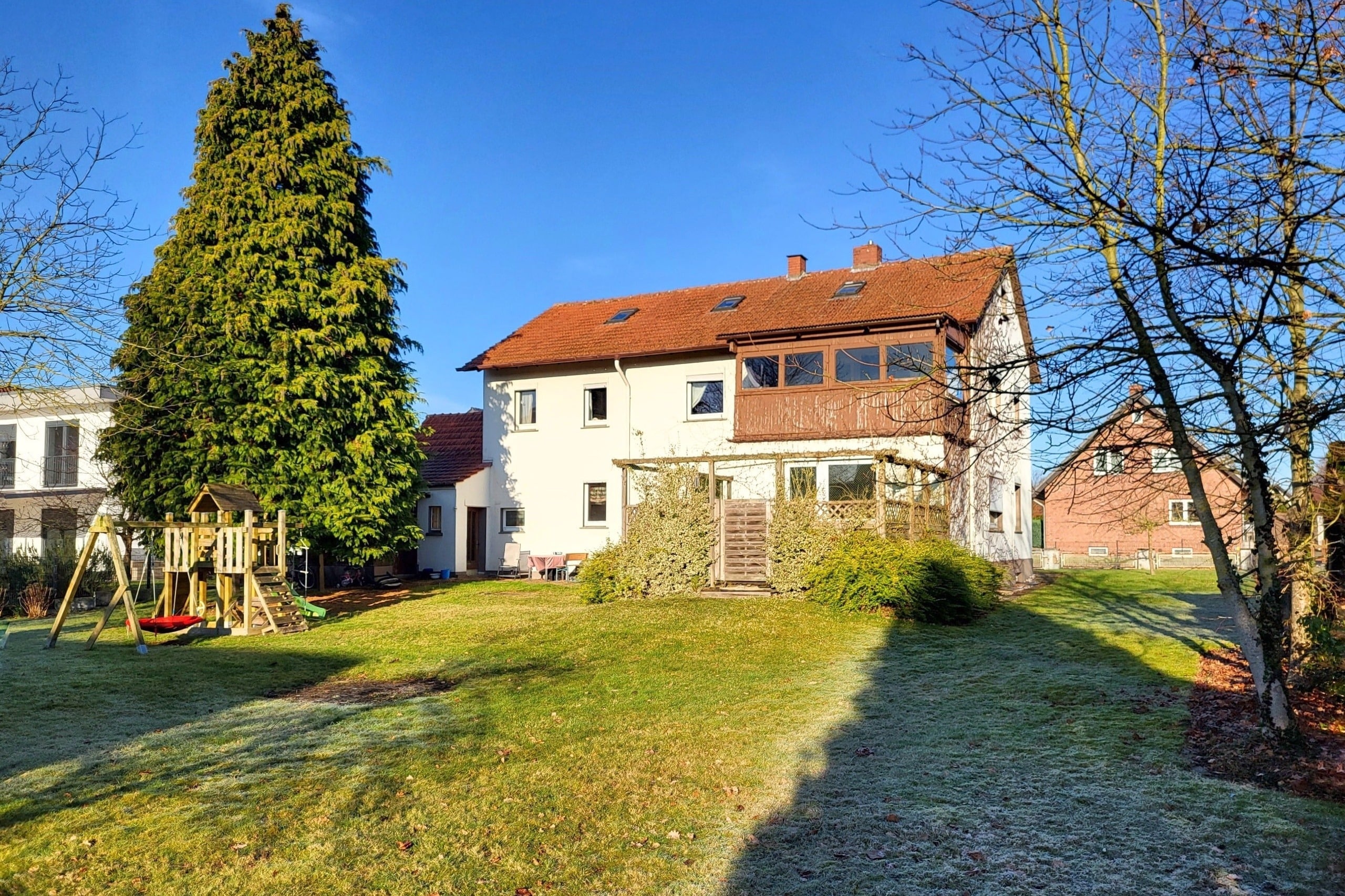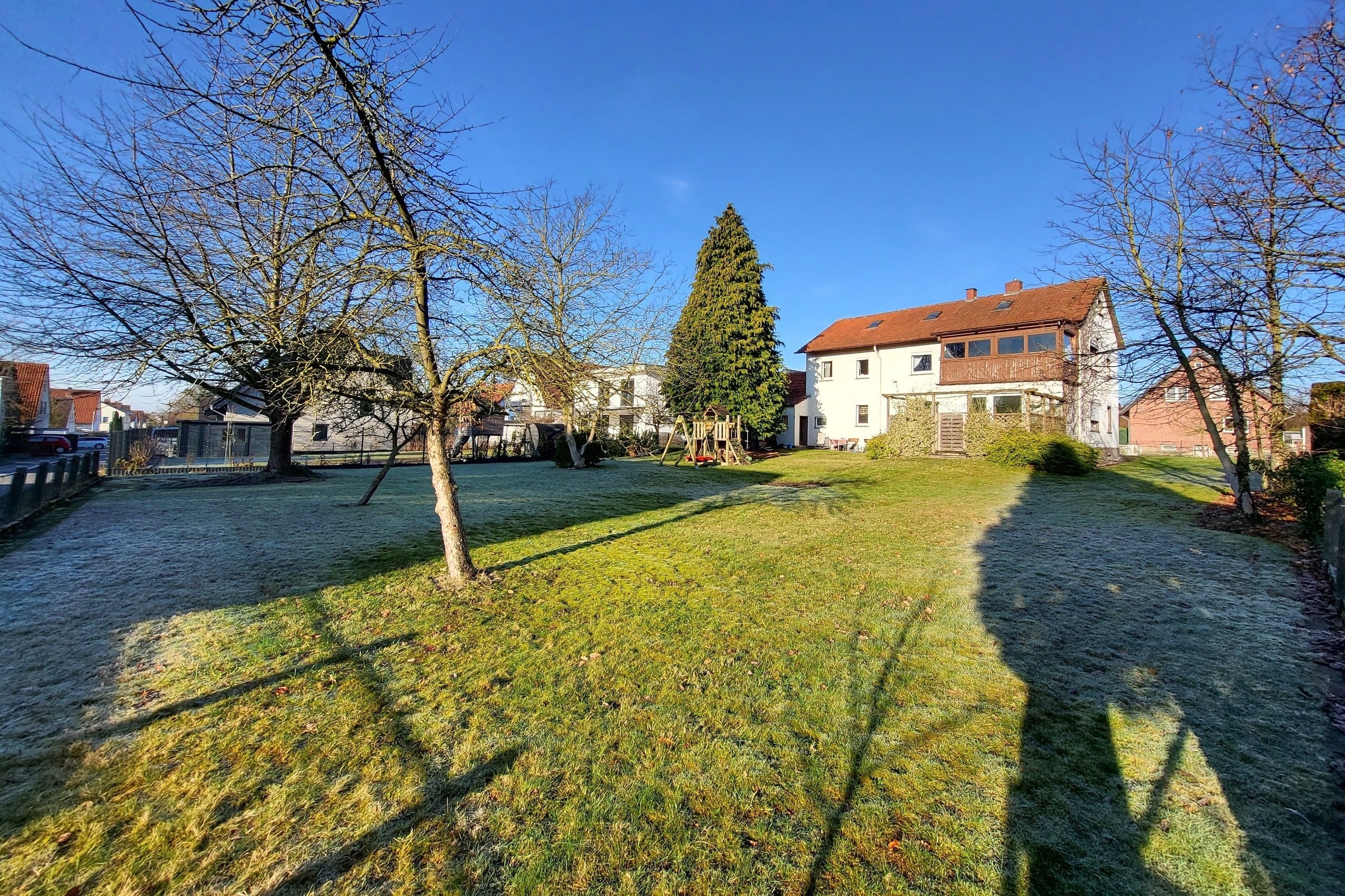 Der weitläufige Garten bietet Ruhe und Platz für Kinder, Hobbygärtner oder Tierliebhaber – ein echter Rückzugsort im Grünen. Gleichzeitig eröffnet sich hier eine attraktive Zukunftsperspektive: Das Grundstück kann in zwei Flächen von jeweils ca. 650 m² geteilt werden, sodass nach § 34 BauGB die Bebauung mit einem weiteren Ein- oder Zweifamilienhaus möglich ist – beispielsweise für die nächste Generation.