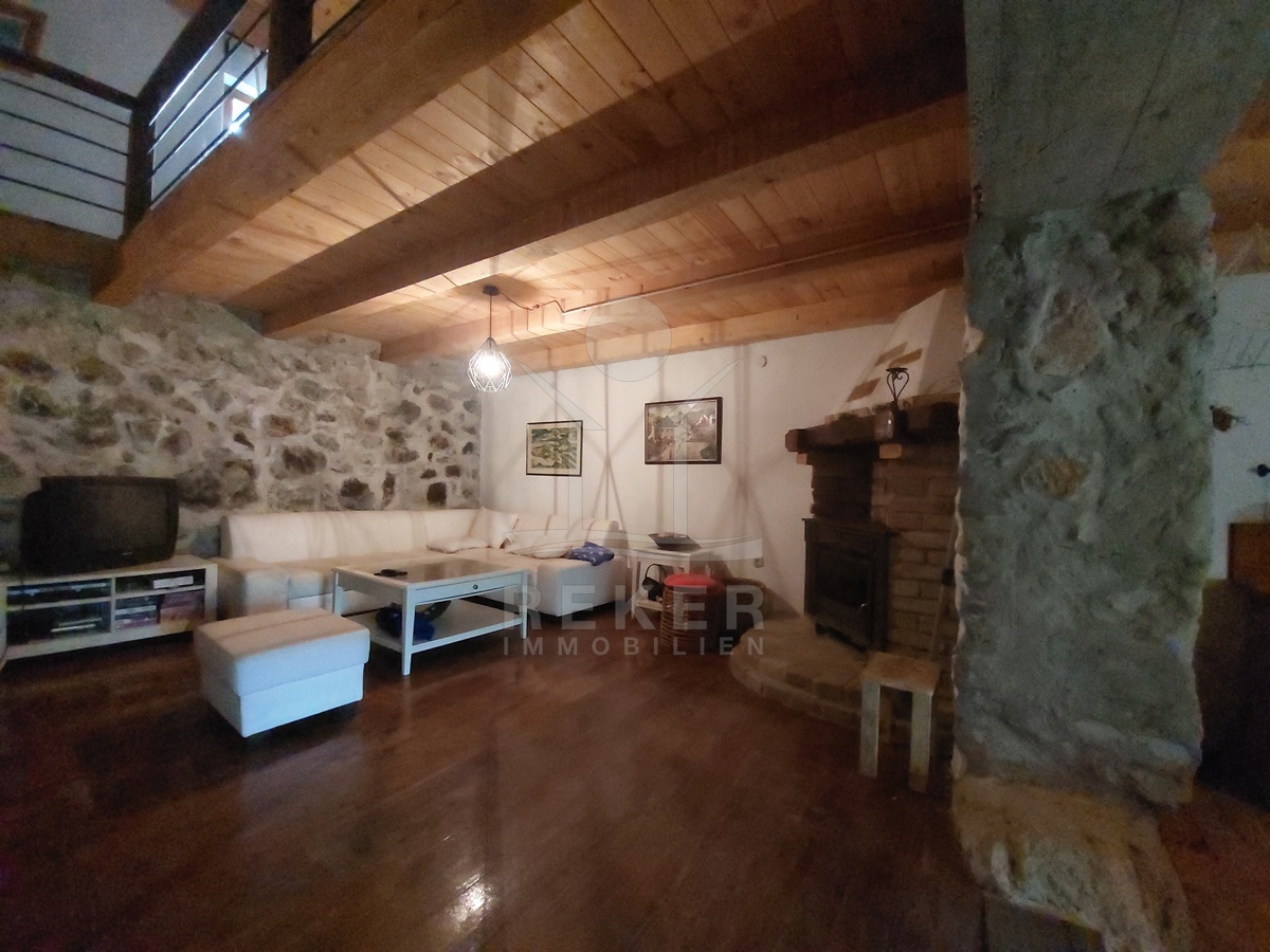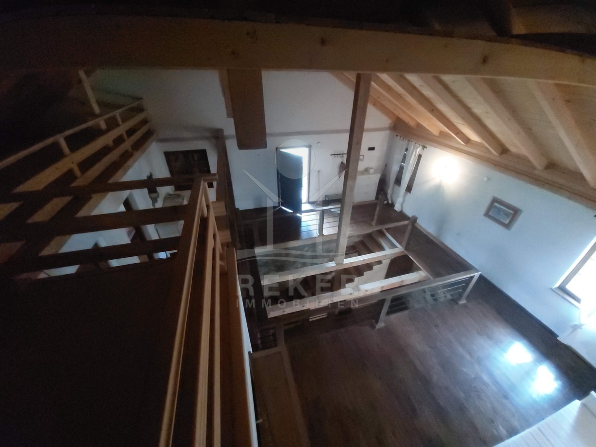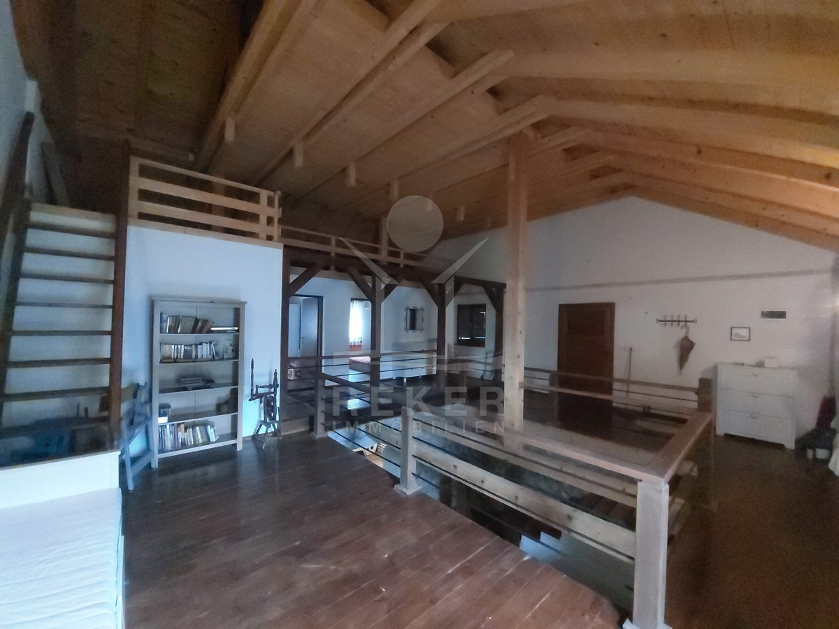 Sichtbare Holzbalken, Ziegelboden in der Küche und eine Galerie prägen den Charakter dieses Hauses. In Kombination mit der vollständigen Möblierung entsteht ein sofort nutzbares Gesamtpaket. Eine besondere Mischung aus Stil, Funktion und Nutzungsmöglichkeiten.