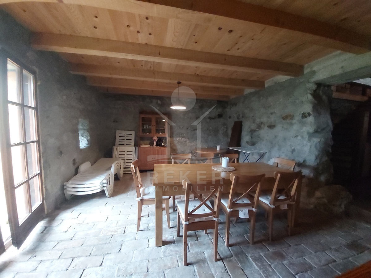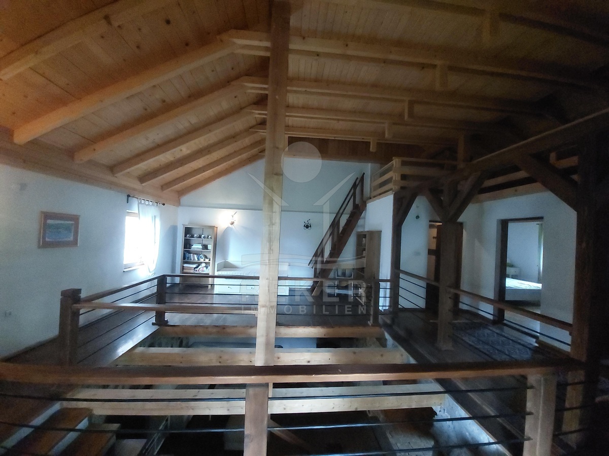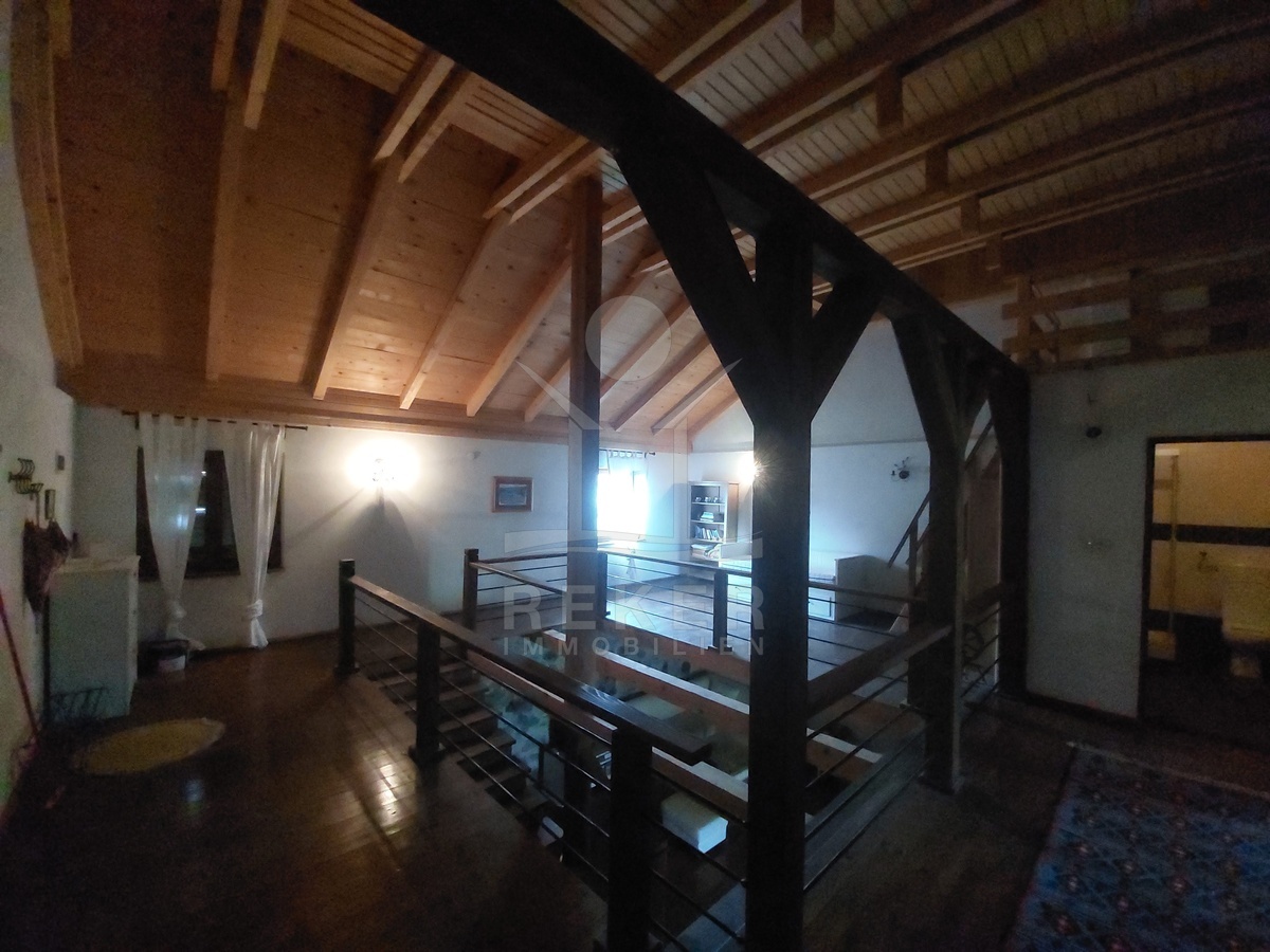 Sichtbare Holzbalken, Ziegelboden in der Küche und eine Galerie prägen den Charakter dieses Hauses. In Kombination mit der vollständigen Möblierung entsteht ein sofort nutzbares Gesamtpaket. Eine besondere Mischung aus Stil, Funktion und Nutzungsmöglichkeiten.