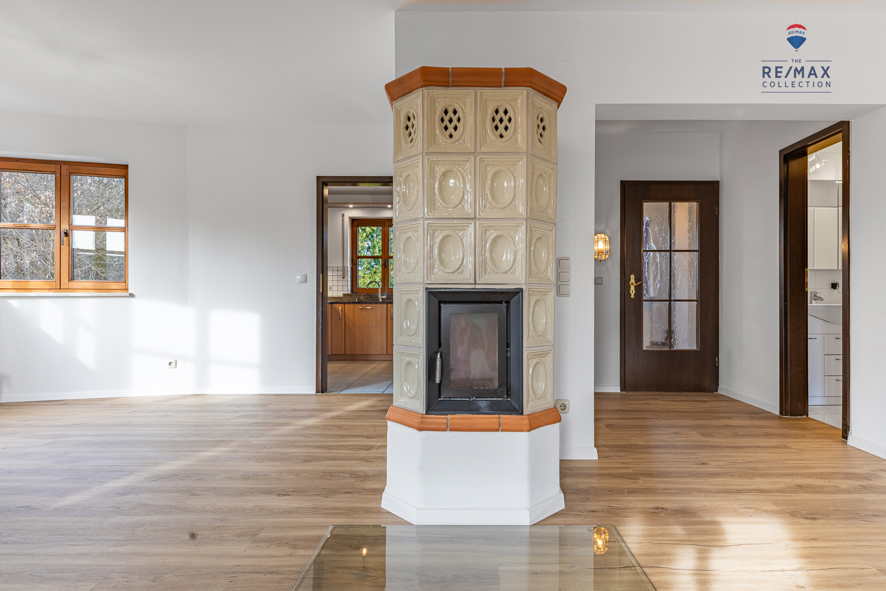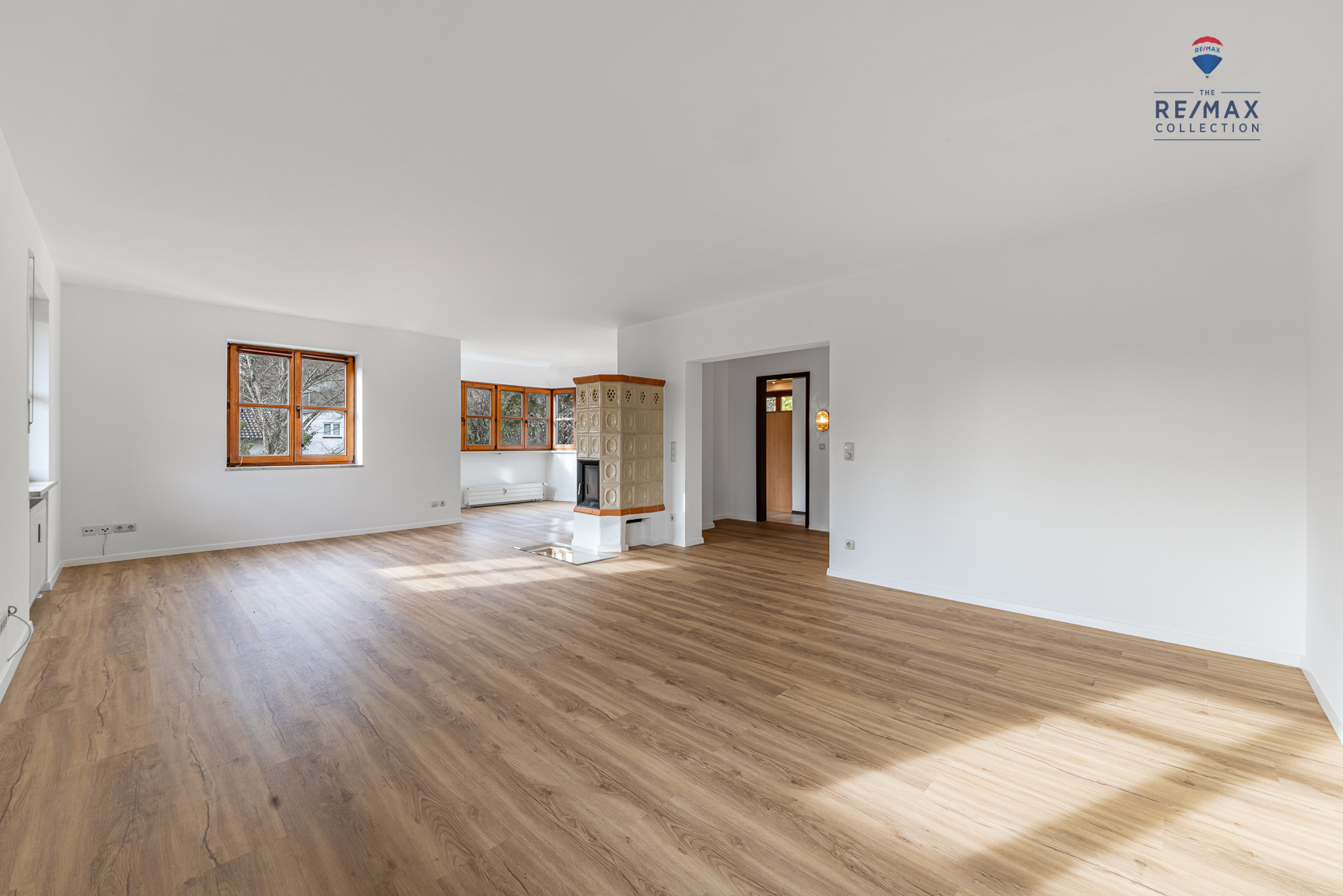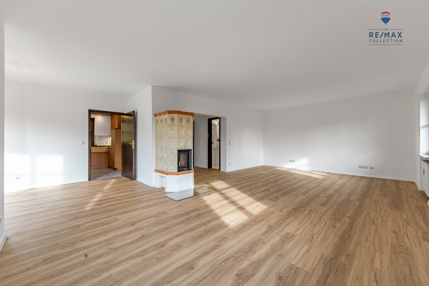 Wohlfühlen auf zwei Ebenen Im 1. Obergeschoss finden Sie das geräumige Wohnzimmer mit angeschlossenem Essbereich im Erker (Gesamtfläche ca. 43 m²), die voll ausgestattete Einbauküche, einen Abstellraum sowie ein hell gefliestes Badezimmer mit Wanne. Im Wohn- und Essbereich wurde ein nagelneuer, hochwertiger Vinylboden in Holzoptik verlegt. Passend zum funktionstüchtigen Kaminofen verleiht dieser der Wohnung einen zusätzlichen Charme und Gemütlichkeit.