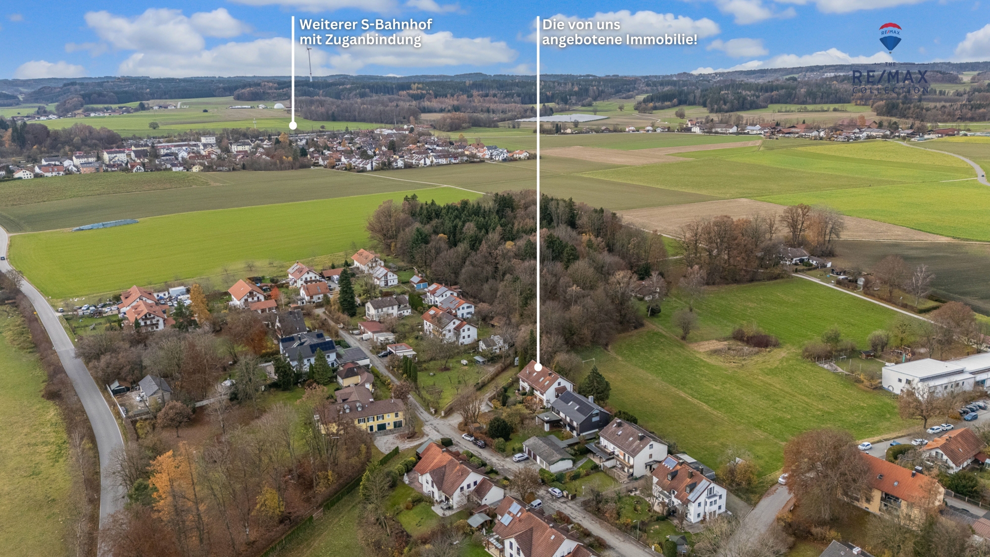 Von großem Vorteil ist die verkehrsgünstige Lage an der Bahnlinie München-Rosenheim mit Anschluss nach Salzburg und Kufstein und direkter Schnellzug- und S-Bahn-Verbindung (20-Minuten Takt) nach München. Der Münchener Ostbahnhof und Hauptbahnhof sowie die Stadt Rosenheim sind von der Station "Grafing Bahnhof", welche in nur wenigen Gehminuten erreichbar ist, jeweils in nur ca. 15 - 20 Minuten erreichbar. Die Regionalbahn fährt jede Stunde und bietet somit eine ideale und sehr schnelle Anbindung an München.