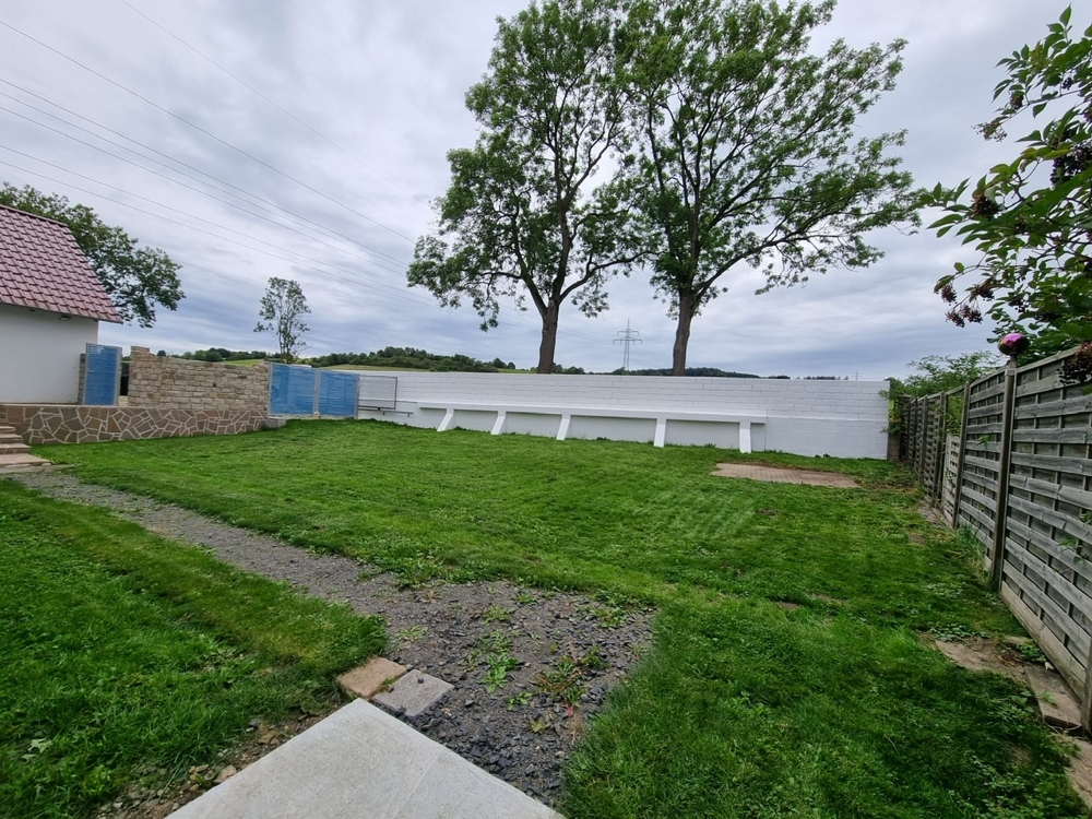 Dieses Einfamilienhaus wurde 1949 massiv erbaut und mehrmals erweitert. Es erstreckt sich über 2 Etagen mit vier Zimmern. Im Erd- und Obergeschoss sind die Wohnräume untergebracht. Im Keller kann ein Raum auch als Büro genutzt werden. Im Erdgeschoss ist eine abgeschlossenes großes Wohn-/ Esszimmer mit einer Fläche von rd. 60 m² mit einer Küche und Möbeln untergebracht. 2 Schlafräume und ein Badezimmer befinden sich im Obergeschoss. Im Dachgeschoss ist noch ein weiteres Zimmer mit Schrägen eingerichtet. Für Ihren PKW ist eine komfortable separate Garage von 2009. Der große Garten mit rd. 741 m² bietet viele Möglichkeiten. Optimal auch für jemand der an Autos was basteln will (hochwertige Garage und vier Stellplätze). Die Fenster, Bäder, moderne Küche, Bodenbelag, die Türen und einige Heizkörper wurden erst kürzlich alle erneuert,