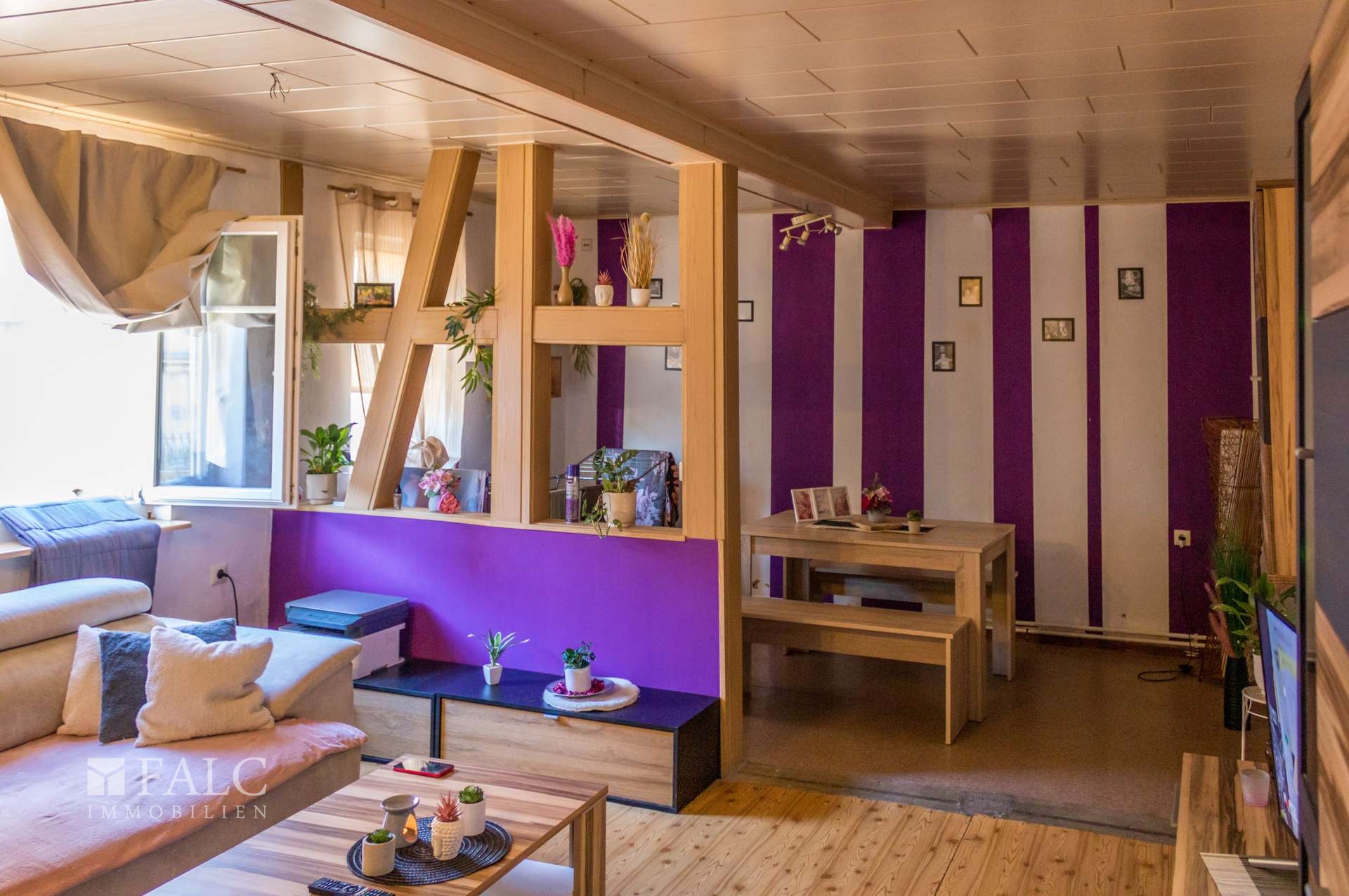 Das erste Obergeschoss ist momentan als Wohneinheit mit mehreren Räumen organisiert, ein zentraler Wohnbereich, eine Küche sowie ein Kinderzimmer und ein Bad, es könnte ebenso als Ferienwohnung oder für Kurzzeitvermietung genutzt werden, auf der Rückseite ist ein Balkon.