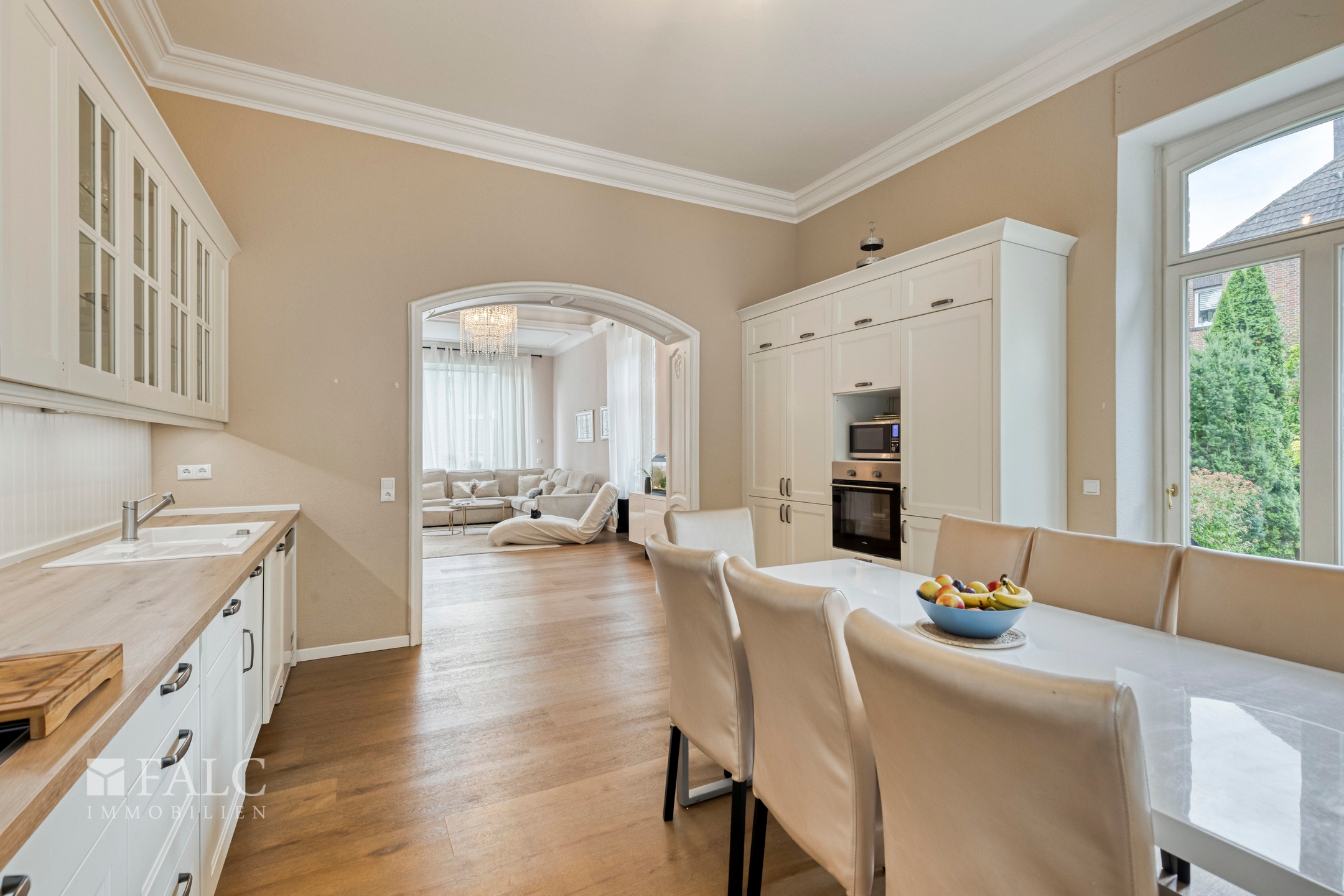 Beim Betreten dieses großzügigen Hauses mit einer Wohnfläche von ca. 364 m² werden Sie von einem einladenden Flur empfangen, der direkt in den offenen Wohn- und Essbereich führt. Dieser Raum bietet reichlich Platz für gesellige Abende und ist mit großen Fenstern ausgestattet, die viel Tageslicht hereinlassen. Die angrenzende Küche ist modern gestaltet und bietet ausreichend Arbeitsfläche für kulinarische Kreationen.