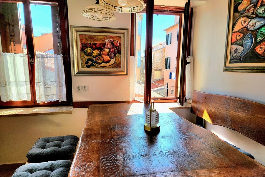 Zum Verkauf steht eine ansprechende Wohnung im Dachgeschoss, gelegen in der ersten Reihe zum Meer in Rovinj, Istrien.