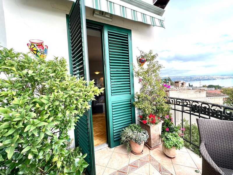 Das Appartement befindet sich im dritten Stockwerk einer 1908 erbauten Villa und bietet einen wunderschönen Blick auf das Stadtzentrum und das nur ca. 250 Metern entfernte Meer.