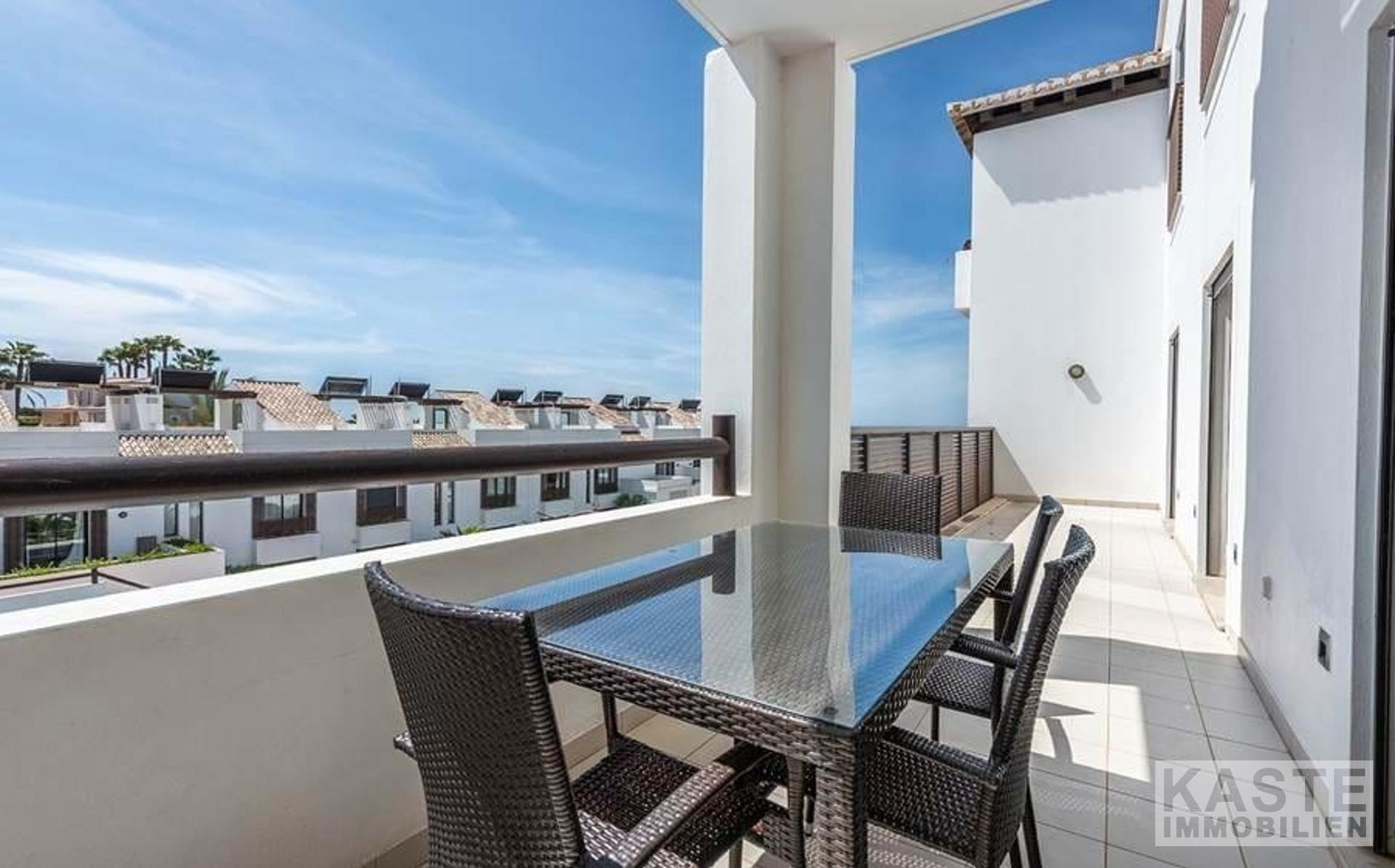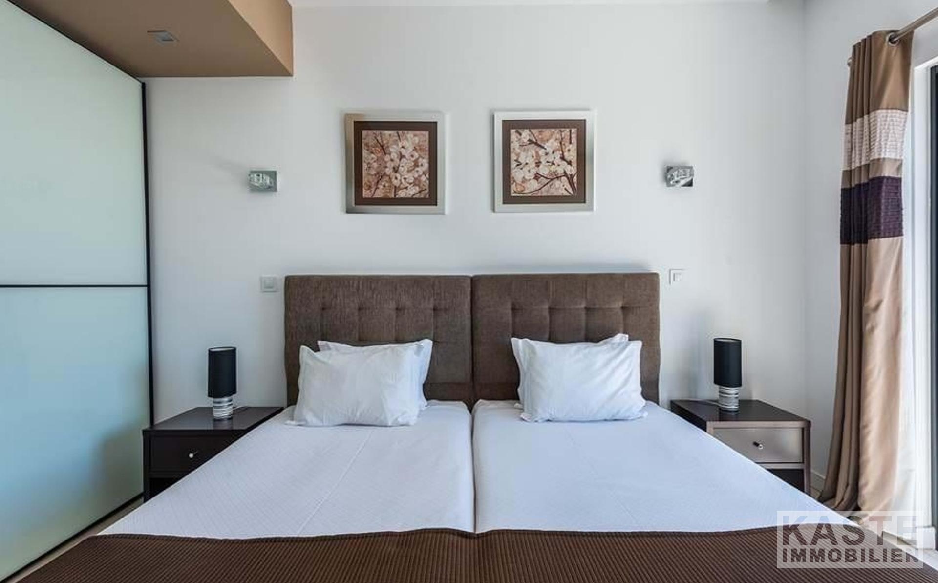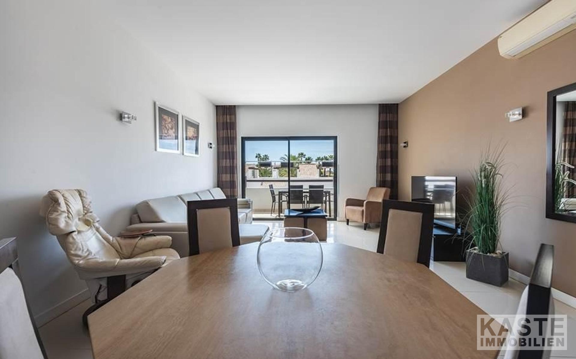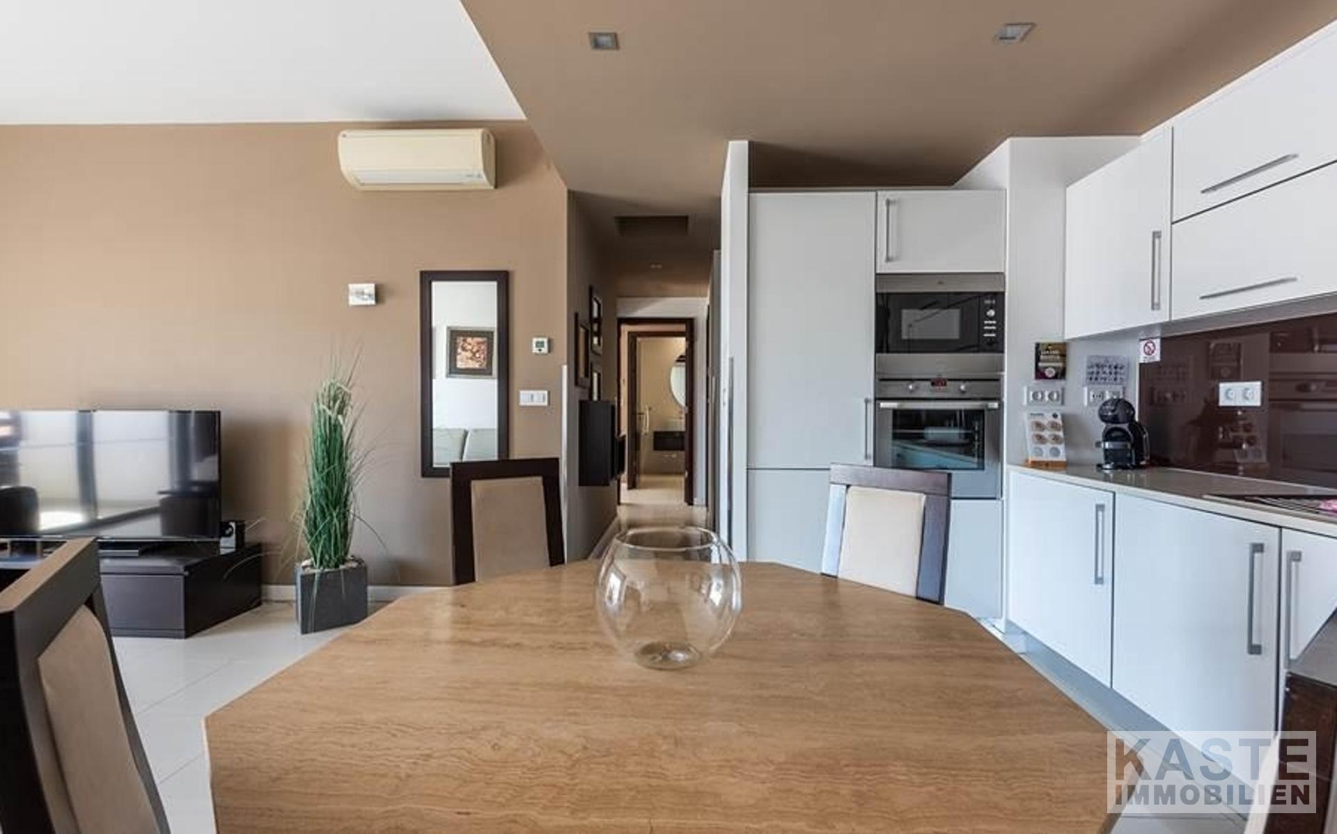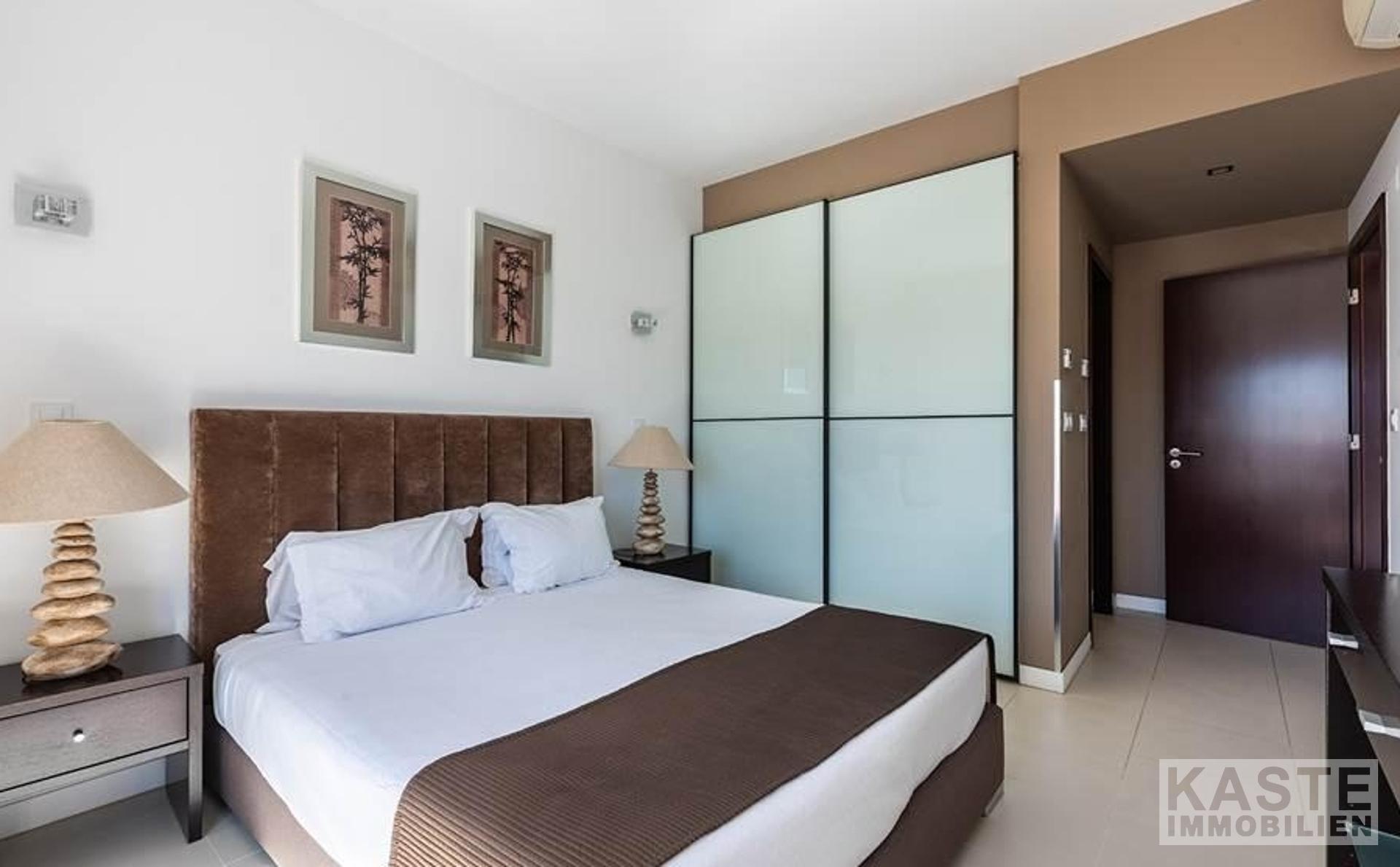 Die Wohnung ist mit Fußbodenheizung, Klimaanlage, elektrischen Rollläden, WiFi und einem Tiefgaragenplatz ausgestattet. Das Anwesen gehört zum renommierten Belmar Spa & Beach Resort, das zahlreiche Annehmlichkeiten wie Restaurants, Bars, vier Außenpools, einen beheizten Innenpool, ein Spa und ein Fitnessstudio bietet.