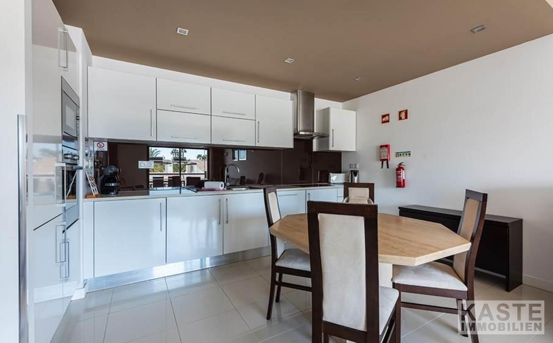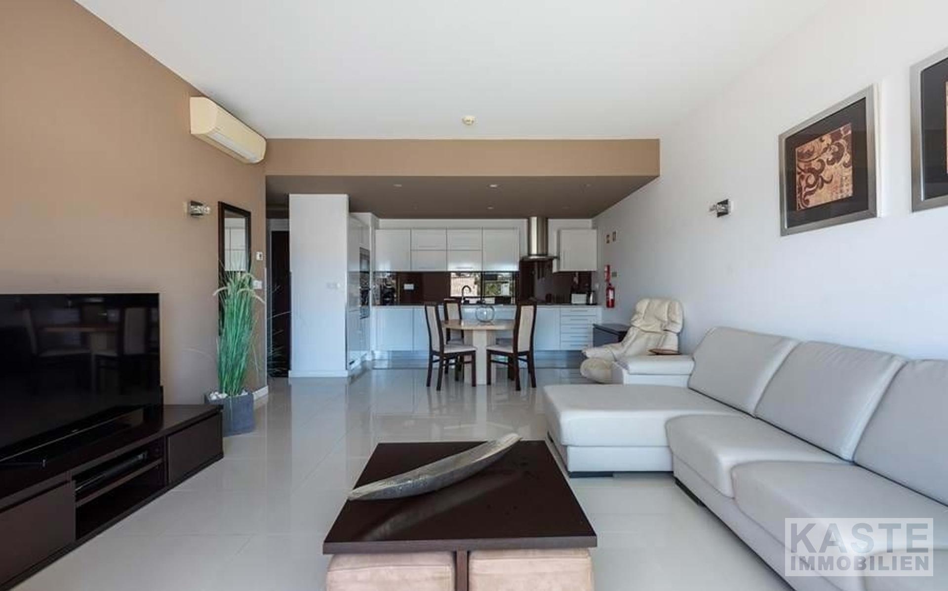 Dieses hervorragend gelegene, nach Südwesten ausgerichtete Apartment bietet vom Balkon aus einen spektakulären Blick auf den Pool, den gepflegten Garten und das Meer. Der offene Wohnbereich führt zu einem großzügigen Balkon, der ideal für entspannte Stunden im Freien ist. Die voll ausgestattete Küche bietet alle notwendigen Geräte für modernen Komfort.