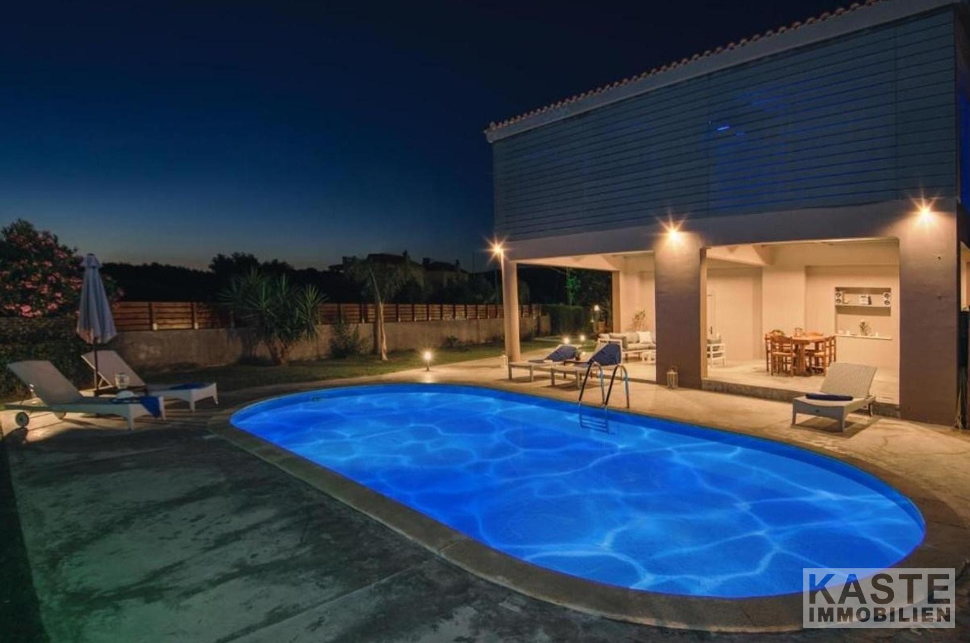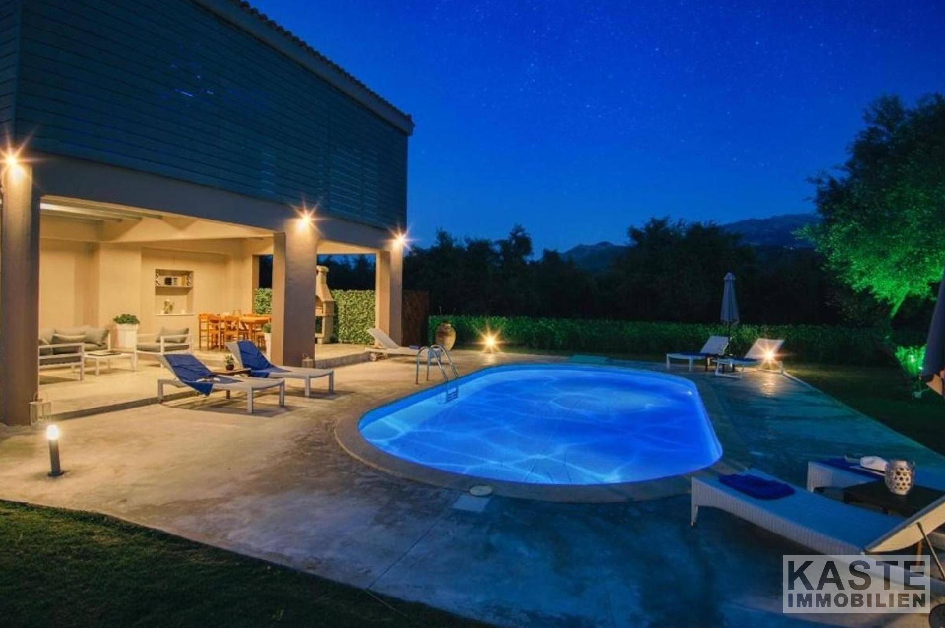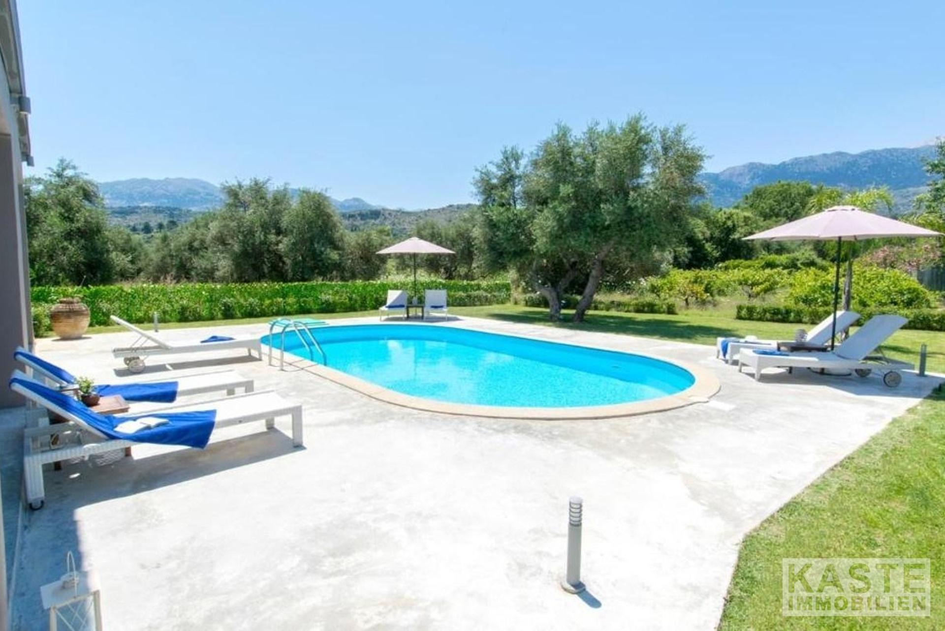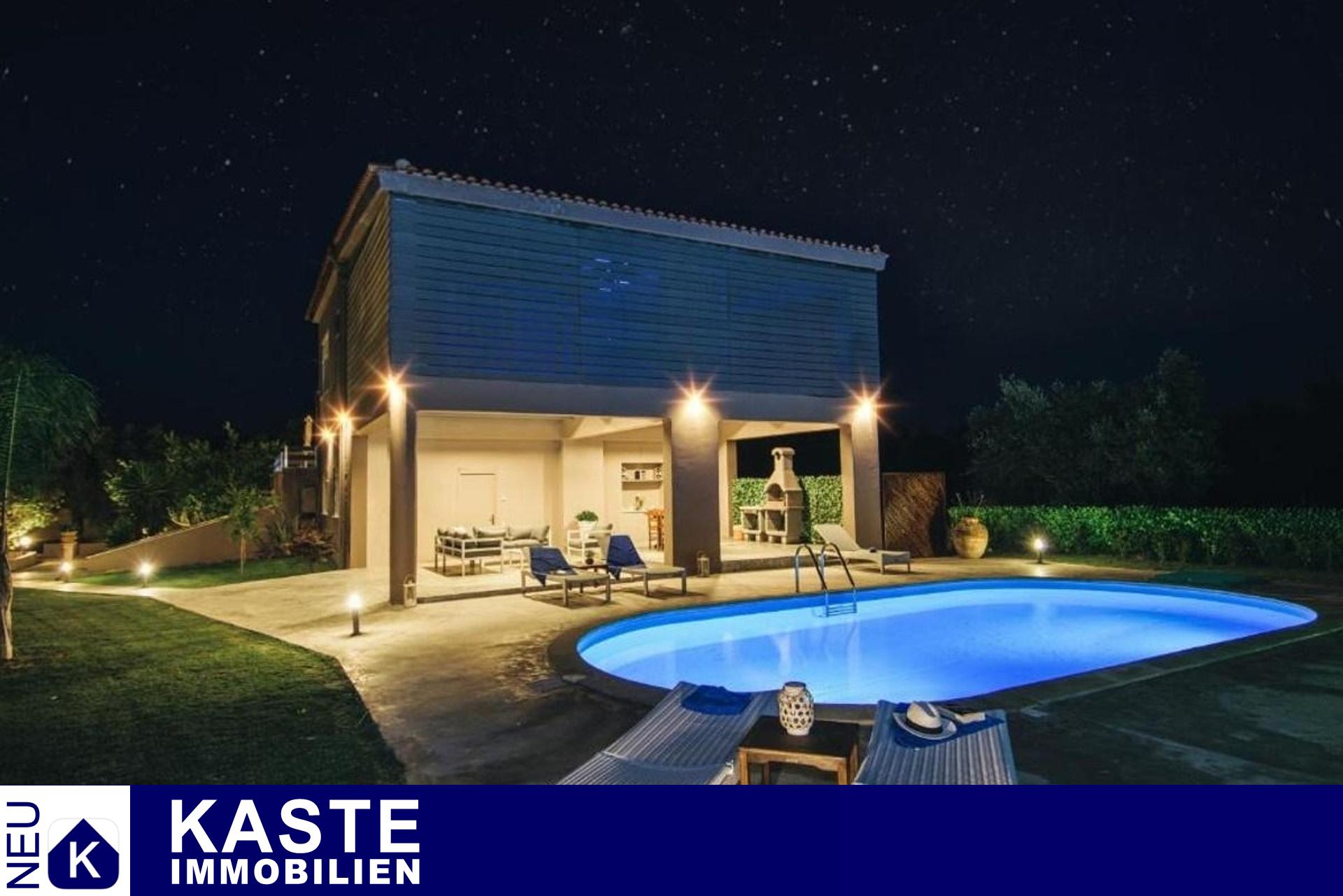 Diese Villa mit 5 Schlafzimmern, 3 Bädern und einer Gesamtwohnfläche von 340 m² auf einem Grundstück von 4.908 m² liegt weniger als 10 Minuten Fahrt zum Strand von Georgioupolis entfernt.