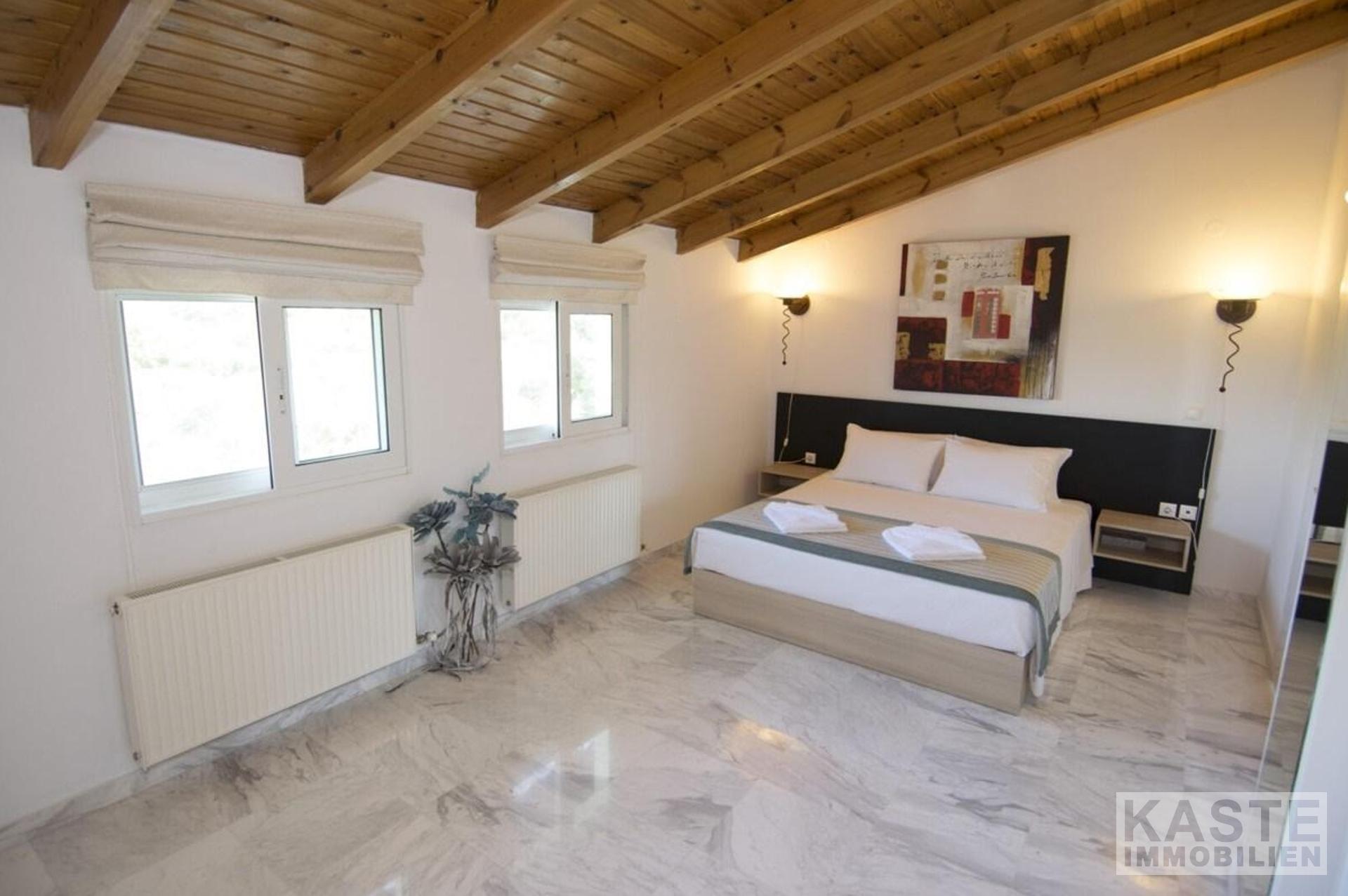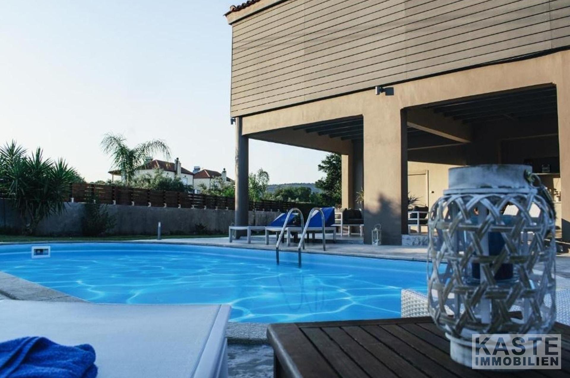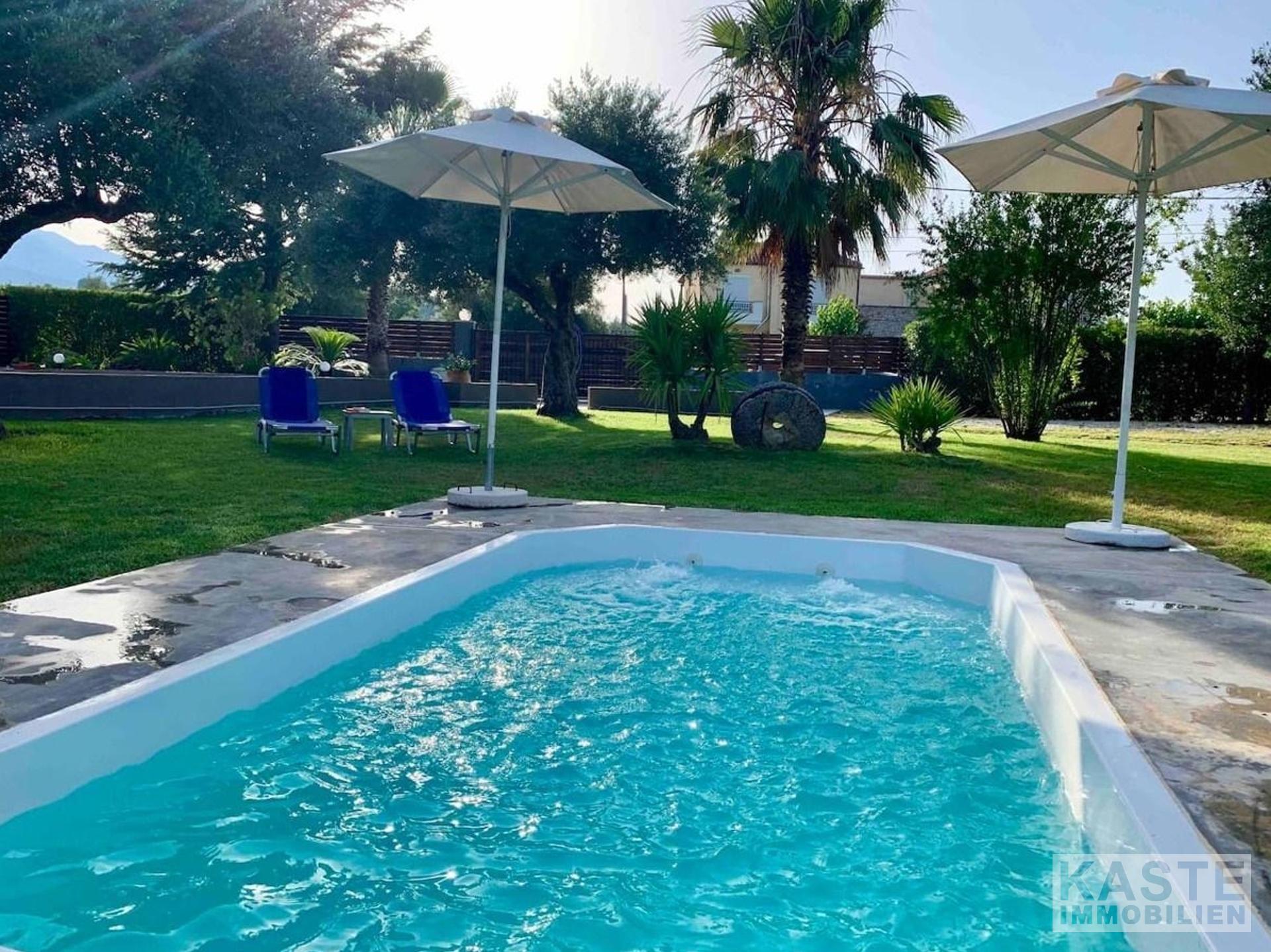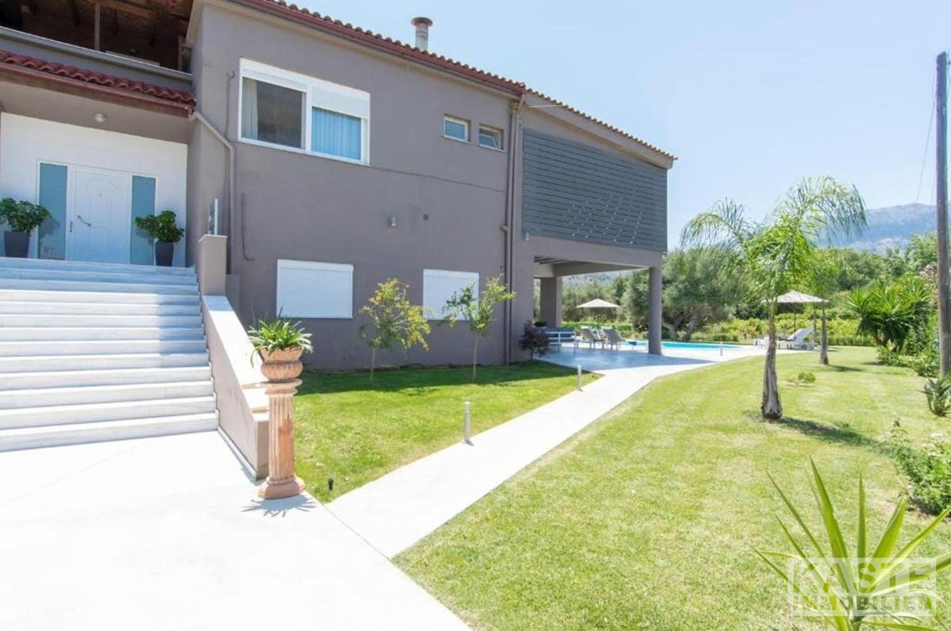 Diese Villa mit 5 Schlafzimmern, 3 Bädern und einer Gesamtwohnfläche von 340 m² auf einem Grundstück von 4.908 m² liegt weniger als 10 Minuten Fahrt zum Strand von Georgioupolis entfernt.