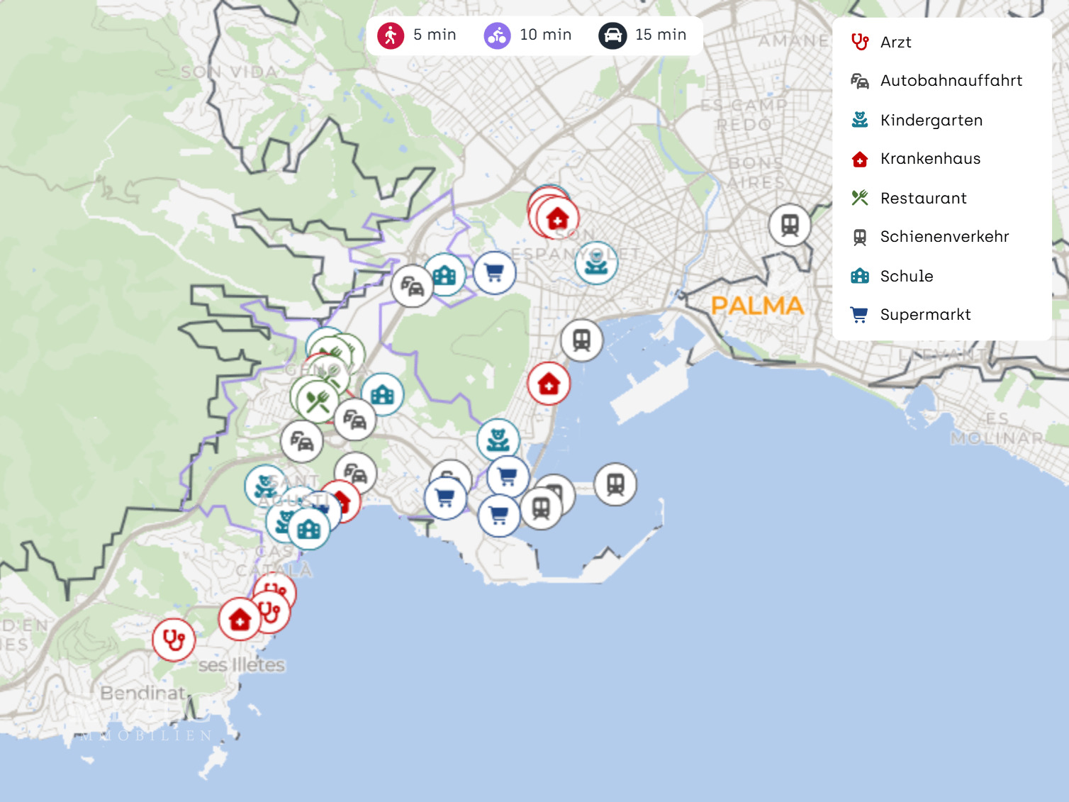 Insgesamt bietet die Lage eine ausgewogene Mischung aus ruhigem Wohnen, guter Infrastruktur und schneller Erreichbarkeit von Palma, Küste und Flughafen.