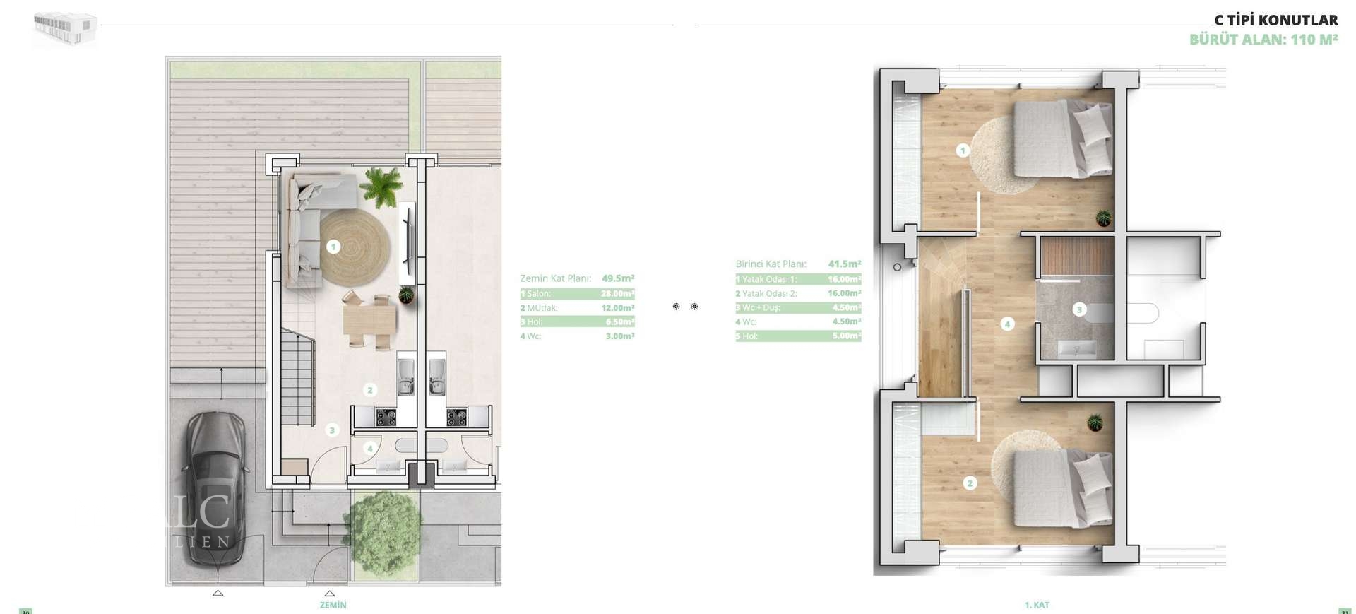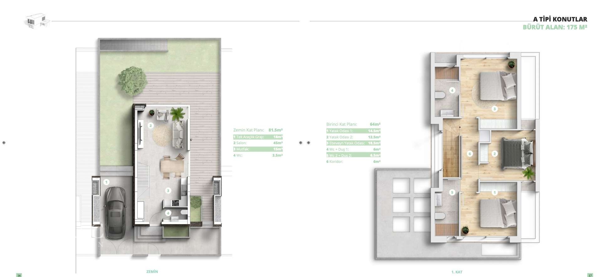 Das Projekt umfasst insgesamt 20 4 Zimmer-Maisonette-Villen mit einer Wohnfläche von 175 m² sowie 12 3 Zimmer-Maisonette-Reihenhäuser mit einer Wohnfläche von 110 m², insgesamt 32 Häuser.