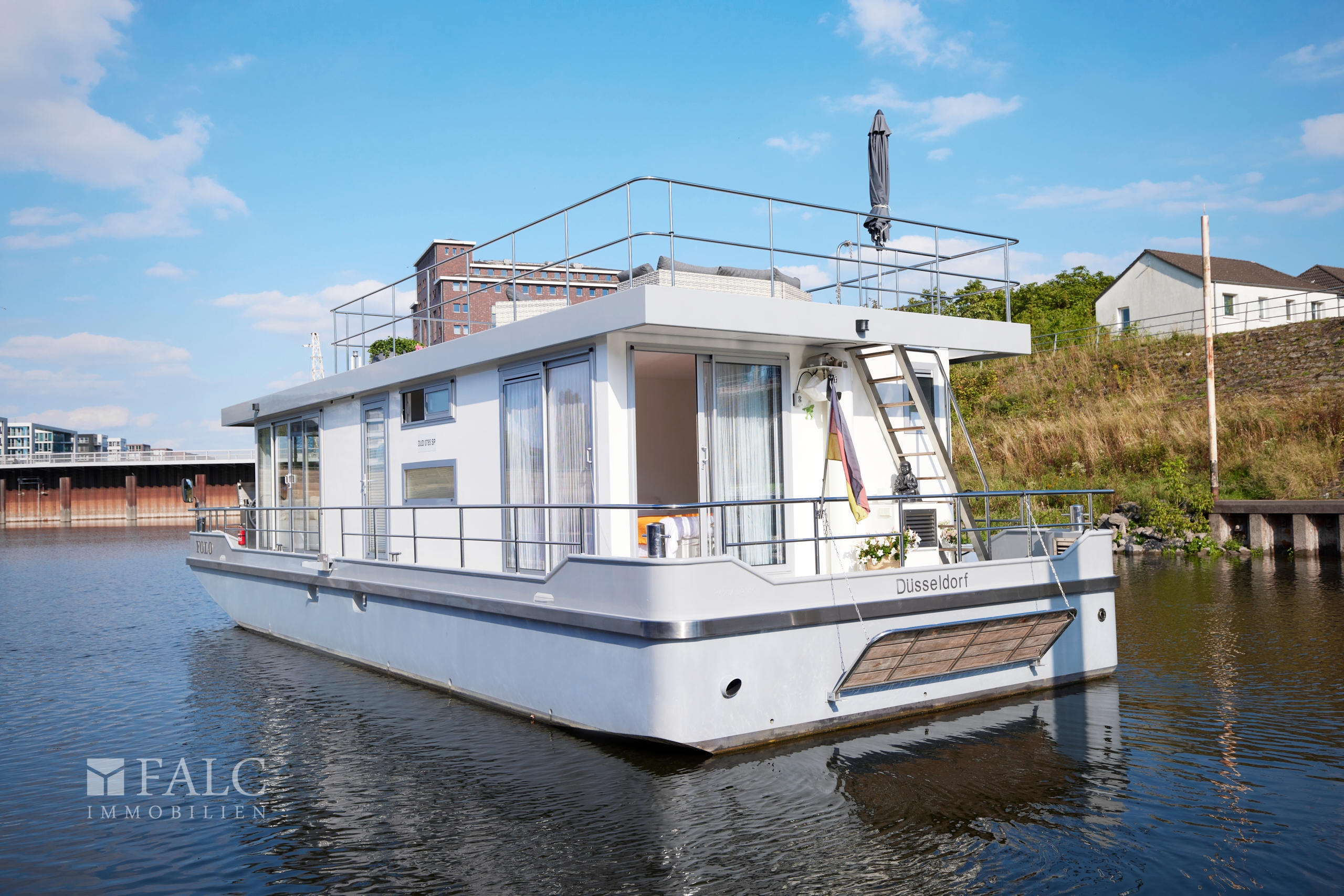 YOU ONLY LIVE ONCE Der Name YOLO dieses wunderschönen Hausboots mit Liegeplatz in der Marina Duisburg ist hier Programm. Als Weltbürger, Abenteurer, Aussteiger, Umsteiger, Veränderer, Genießer und Macher leben Sie Ihr einzigartiges Leben hier und jetzt! Sie haben es sich verdient. Leben Sie in den Metropolen, Städten und Dörfern entlang beliebter Flüsse mit deren individuellen, kulturellen und lukullischen Vorzügen. Genießen Sie die idyllischen Flüsse und Seen in privater Abgeschiedenheit inmitten einer atemberaubenden Natur und tanken Sie Kraft für Ihre Seele und für neue Abenteuer. Erfüllen Sie sich Ihren Traum eines unbeschwerten Lebens in Ihrer luxuriösen Wohnung auf dem Wasser. In den vergangenen Jahren lebten die Eigentümer bevorzugt zentral in den Marinas Köln, Düsseldorf und Duisburg. Sie haben flussauf- und flussabwärts erlebnisreiche und unvergessene Reisen unternommen. Der Motor Cruising Home Traveller XXL überzeugt mit 45m2 Wohnfläche und Licht durchfluteten Räumen. Vom Eingangs und der offen gestalteten Diele gelangen Sie in Fahrtrichtung nach vorne in das besonders großzügige Wohn- Esszimmer mit integrierter und voll ausgestatteter Küchenzeile. Die bodentiefen Fensterelemente an drei Raumseiten geben den Blick in die Welt frei. Vom Wohnzimmer gelangen Sie zum Bug des Schiffes, der gleichzeitig Ihre ca. 13m2 große Veranda mit Fahrstand ist. Hier setzen Sie Kurs zu neuen Abenteuern. Das mittschiffs gelegene Dusch- und Wannenbad mit Fenster überzeugt auch während der Fahrt. Nehmen Sie ein Bad während die Welt an Ihnen vorüberzieht. Am Heck des Schiffes befindet sich Ihr Schlafzimmer mit ebenfalls bodentiefen und großen Fenster-Schiebetürelementen, einem Einbauschrank und einer zusätzlichen, überdachten, ca. 12m2 großen Veranda sowie einer Badeplattform. Über die Treppe erreichen Sie die riesige, bis zu ca. 52m2 (30m2 und 22m2) große Dachterrasse, die gleichermaßen zum Sonnenbad und zu gemütlichen Stunden zu zweit oder im Kreise Ihrer Familie und Freunde einlädt. Doch Vorsicht - stehen die Sterne am Himmel dann wollen Ihre Gäste nicht mehr gehen. Im Rumpf des Schiffes ist im Bugbereich ein geräumiger Stauraum (Keller) sowie mittschiffs ein weiterer ca. 13m2 großer Raum, der als Büro oder Gästezimmer genutzt werden kann sowie im Heck der Maschinenraum mit Heiztechnik und Stromversorgung untergebracht. Mit Verkauf steht das Schiff zur sofortigen Übernahme bereit. Starten Sie ohne Wartezeit in ihr neues Leben auf dem Wasser.