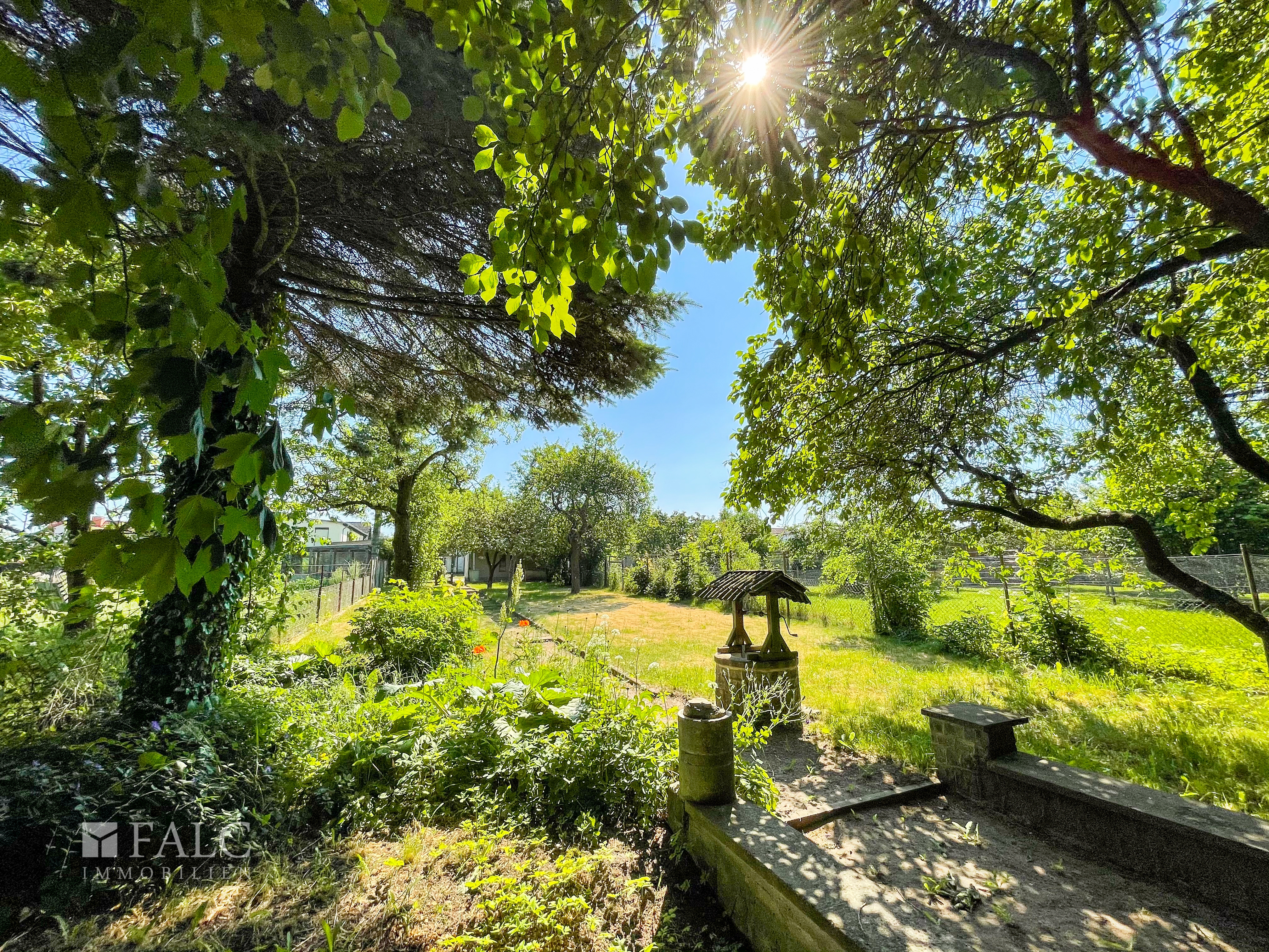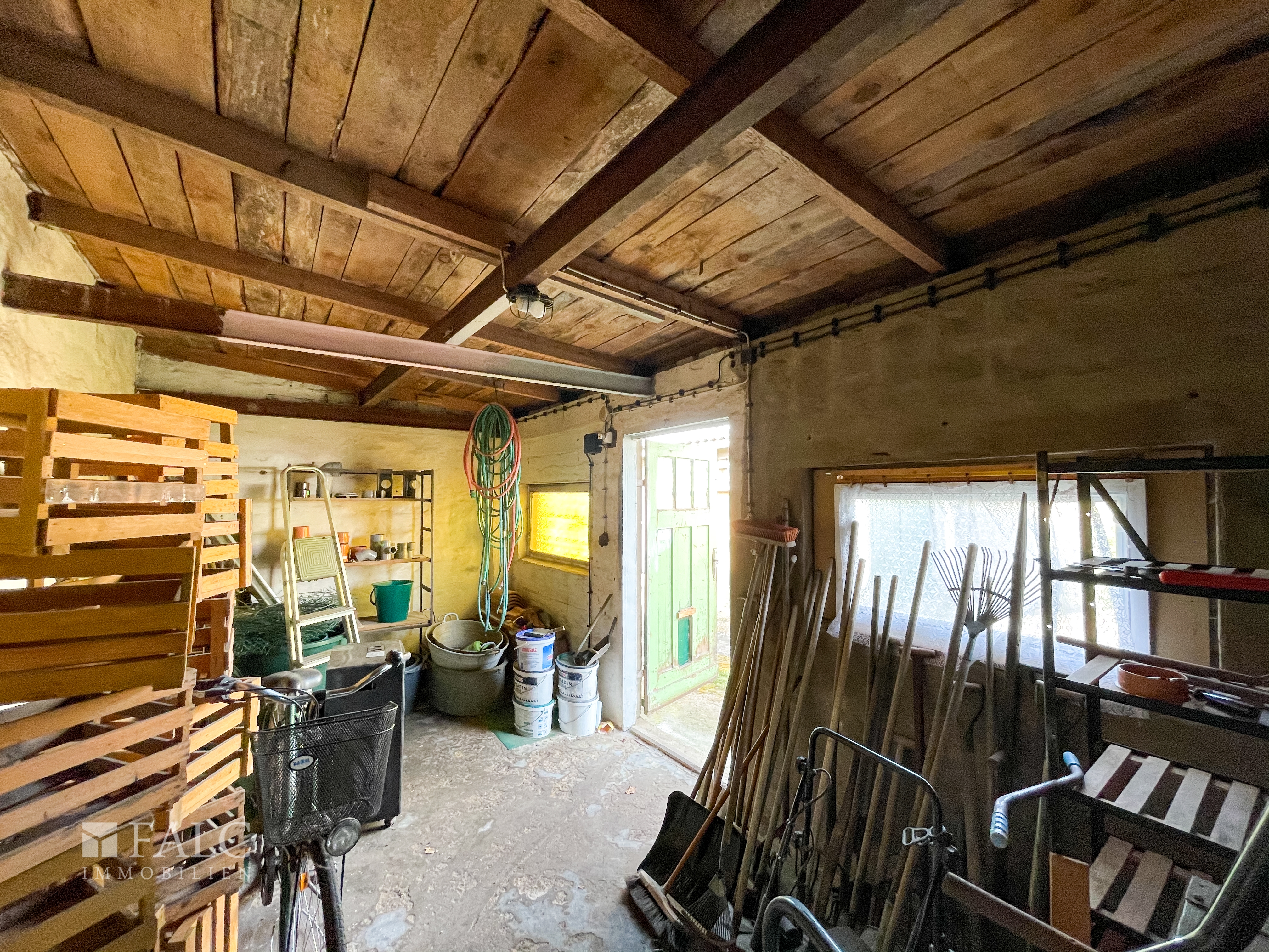 Im großzügigen Innenhof befindet sich eine Doppelgarage, eine Werkstatt und ein Schuppen. Eine überdachte Grill-Terrasse rundet den großen Hof ab. Hier lassen sich schöne Feiern mit Freunden und Familie verbringen und die Kinder haben im Innenhof viel Platz zum Spielen und Toben. Der Garten mit den Obstbäumen ist durch ein Tor vom Innenhof getrennt. Hier befinden sich Apfel-, Birnen- sowie ein Zwetschgenbaum und lässt das Herz eines jeden Selbstversorgers höher schlagen. Hier ist genügend Platz, um sein eigenes Gemüse für die Familie anzubauen. Auch ein gemauerter Hühnerstall muss nur noch mit neuem Leben gefüllt werden und integriert sich im Selbstversorgergarten.