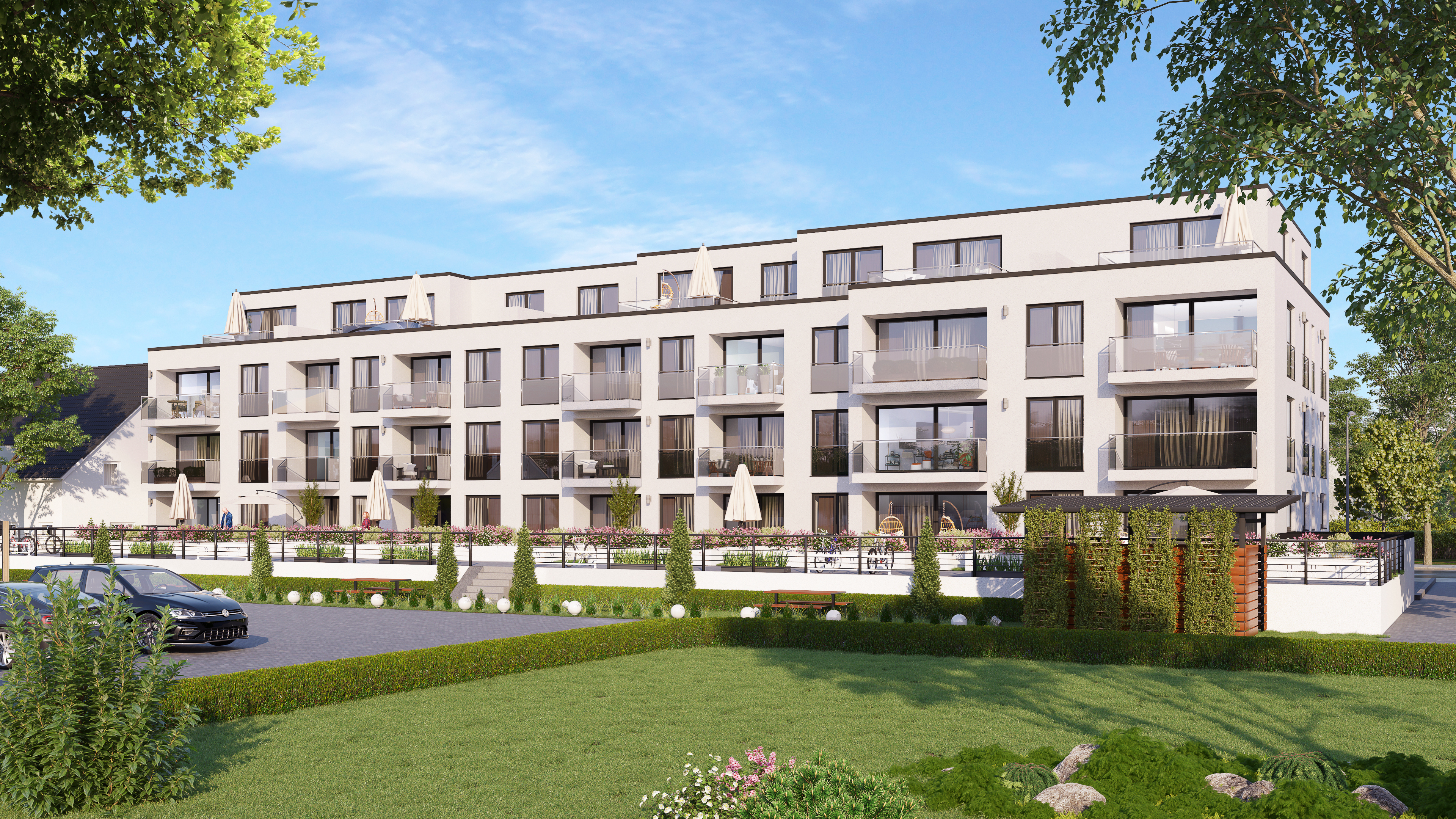 An der Elberfelder Straße in Langenfeld-Wiescheid entsteht ein Wohnprojekt, das mit seiner hervorragenden Lage überzeugt: ruhig eingebettet in eine gewachsene Wohngegend und dennoch bestens angebunden – ein Ort, der Komfort, Mobilität und Lebensqualität verbindet.