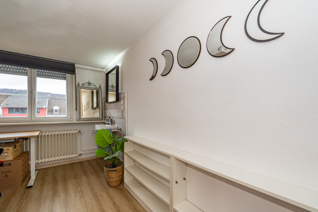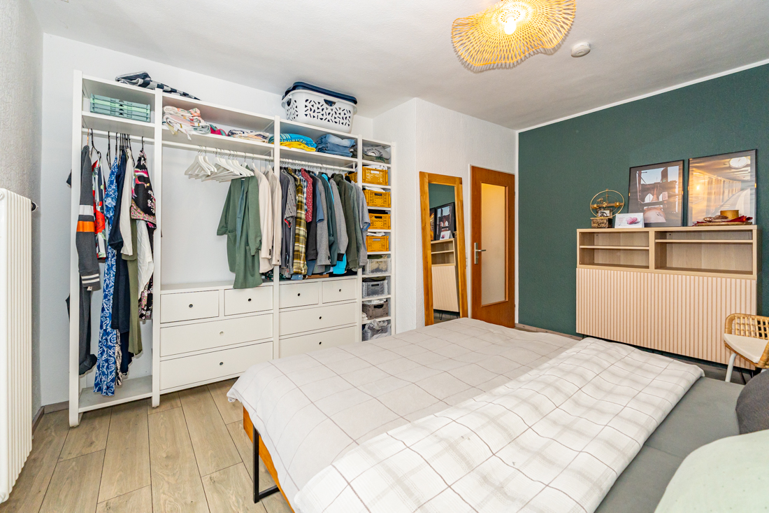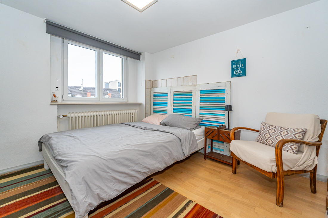 Wohnen und Rückzug Im Obergeschoss stehen helle Zimmer zur Verfügung, die sich flexibel nutzen lassen, zum Beispiel als Schlafzimmer und zusätzliches Zimmer für Homeoffice, Gäste oder Hobby. Große Fensterflächen bringen Tageslicht in die Räume. Die Bodenbeläge wirken pflegeleicht und modern.