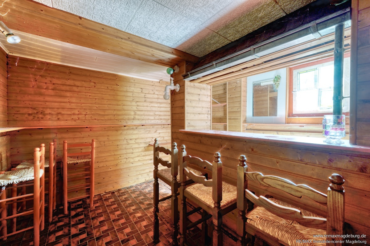 Im Kellergeschoss befinden sich u. A.: Bar Sauna Dusche Partyraum Heizungskeller Lagerraum