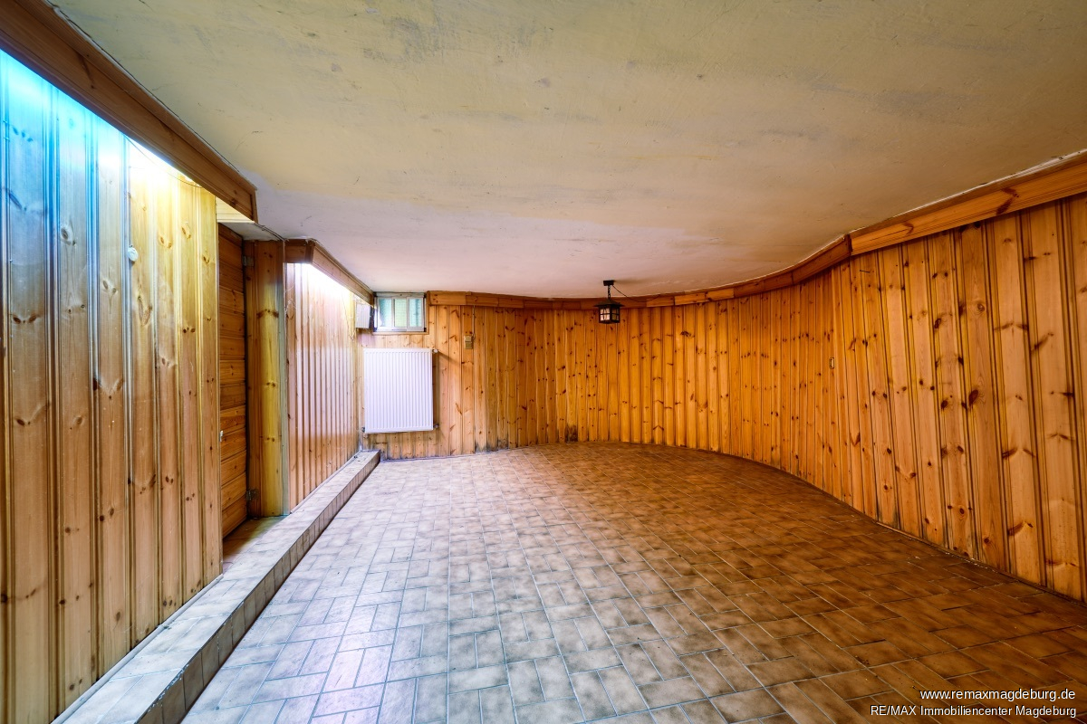 Im Kellergeschoss befinden sich u. A.: Bar Sauna Dusche Partyraum Heizungskeller Lagerraum