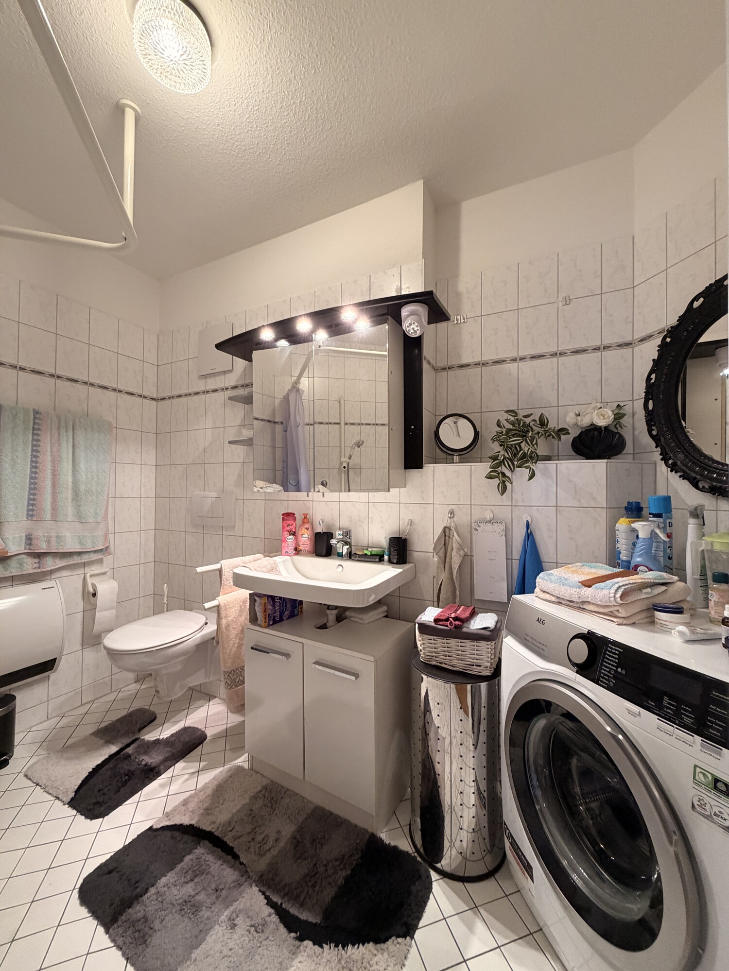 - BAD: 1 Waschbecken, 1 WC, 1 alters- und behindertengerechte Dusche, 1 Waschmaschinen-Anschluss - KÜCHE UND EINBAUKÜCHE (EBK): 1 Küche mit 1 vorhandenen gepflegten modernen Einbauküche (EBK) - FENSTER: Sehr gut isolierende 2-fach verglaste Kunststoff-Fenster und -Balkontüre - BÖDEN: o Diele und Zimmer: Echtholz-Parkett o Bad: Fliesen o Küche: Neu verlegter Vinyl-Fußboden (2024) - HEIZUNG: Gas-Zentralheizung für ein sehr angenehmes Wohnklima - DACH: Sehr guter Zustand, laufend gepflegt und gewartet - KELLER / UNTERGESCHOSS: 1 eigenes großes Kellerabteil zur Eigennutzung [Info !] Keller ist trocken