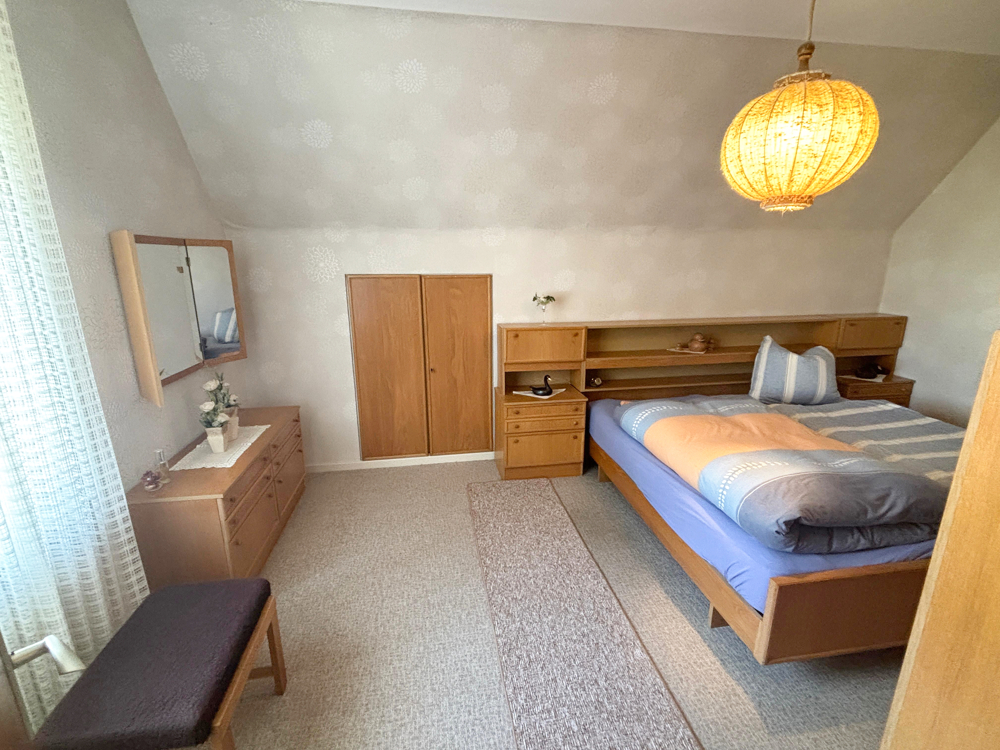 Im Dachgeschoss befinden sich überwiegend Kunststofffenster mit Zweifachverglasung. Die Bodenbeläge bestehen größtenteils aus Teppich. Deckenhöhen von etwa 2,70 m sorgen dabei für ein großzügiges Raumgefühl.