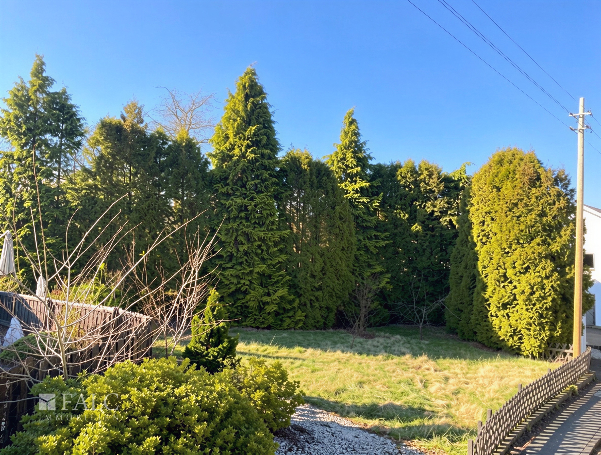 Ein zusätzlicher Vorteil für Bauherren: Die auf dem Grundstück vorhandenen Bäume können nach aktueller Auskunft ohne gesonderte Genehmigung entfernt werden, was zusätzliche Flexibilität bei der Planung des Neubaus ermöglicht.
