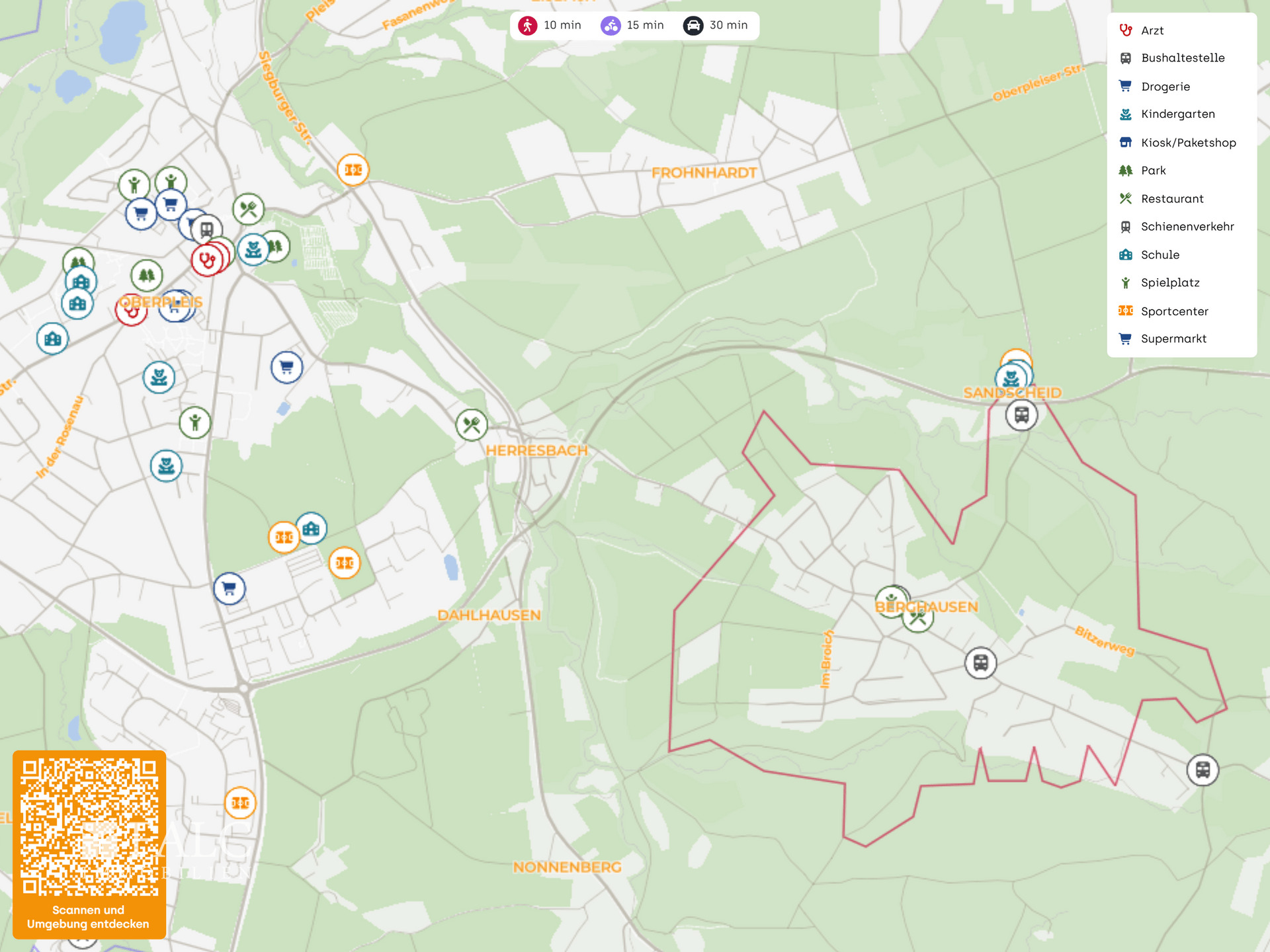 Der Grundstück liegt in Königswinter an der Berghausener Straße in einem angenehm überschaubaren, dörflich geprägten Umfeld, das sich im Alltag besonders entspannt anfühlt. Für Familien ist die Lage praktisch, weil vieles ohne großen Aufwand erreichbar ist: Direkt um die Ecke befindet sich die Bushaltestelle Berghausen Post, weitere Haltepunkte wie Berghausen und Willmeroth Abzweig liegen ebenfalls in der Nähe. So sind Wege in die umliegenden Ortsteile und Richtung Oberpleis unkompliziert planbar. Der nächste Bahnanschluss ist in Oberpleis in rund 2 bis 3 km erreichbar und ergänzt die Anbindung für Pendler und Ausflüge.
