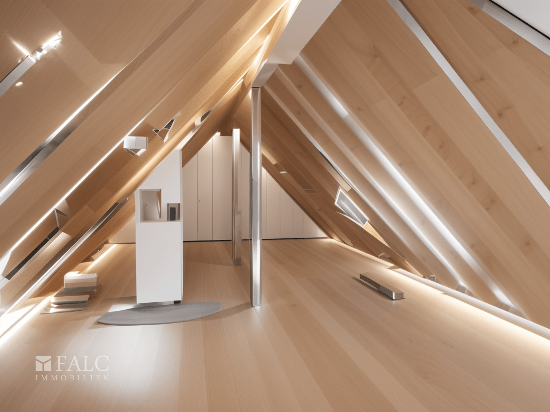 Dort wartet Raum für z.B. drei weitere Zimmer darauf von Ihnen neu gestaltet zu werden. Ihre Möglichkeiten sind hier grenzenlos. Die Räume können sich gut an verschiedenste Vorhaben anpassen. Hier ist von Ankleidezimmer über Schlafzimmer bis hin zum Fitnesszimmer oder einer Loggia mit traumhaften Blick, alles realisierbar. Auf dieser Ebene könnte Ihnen auch ein Badezimmer mit Toilette zur Verfügung stehen - Ihre Privatsphäre ist gewahrt und entspannten Morgenstunden steht nichts mehr im Weg!