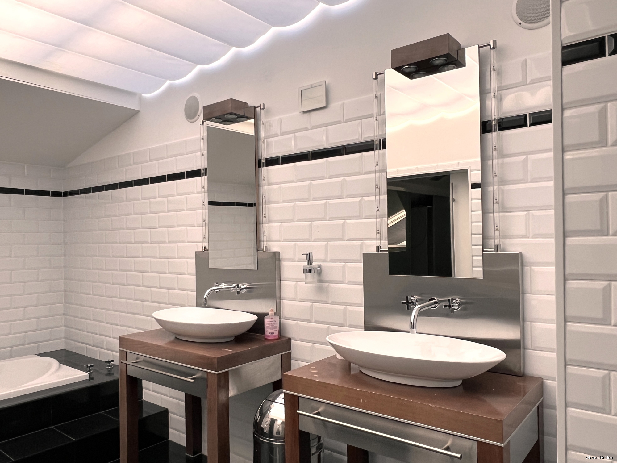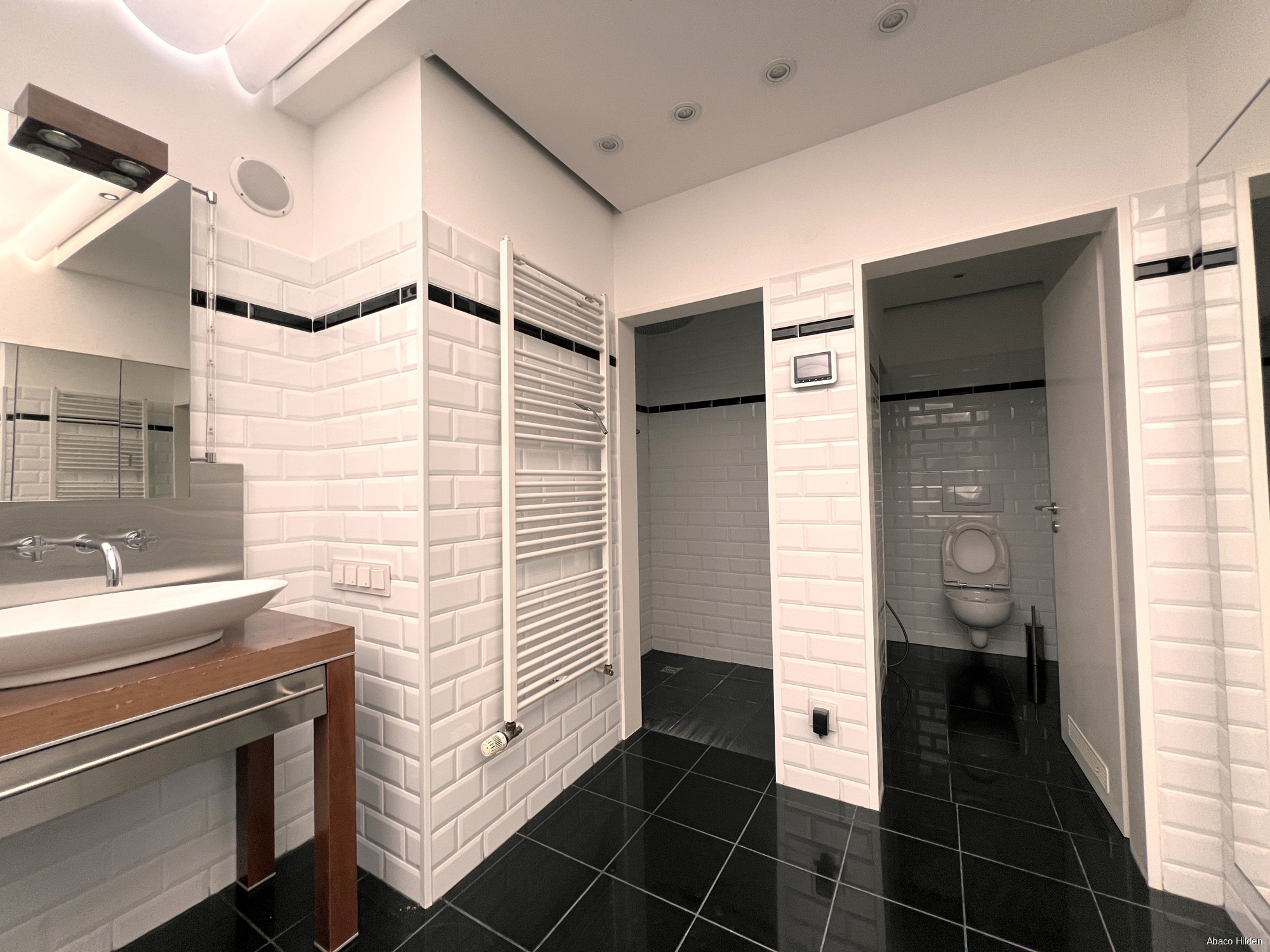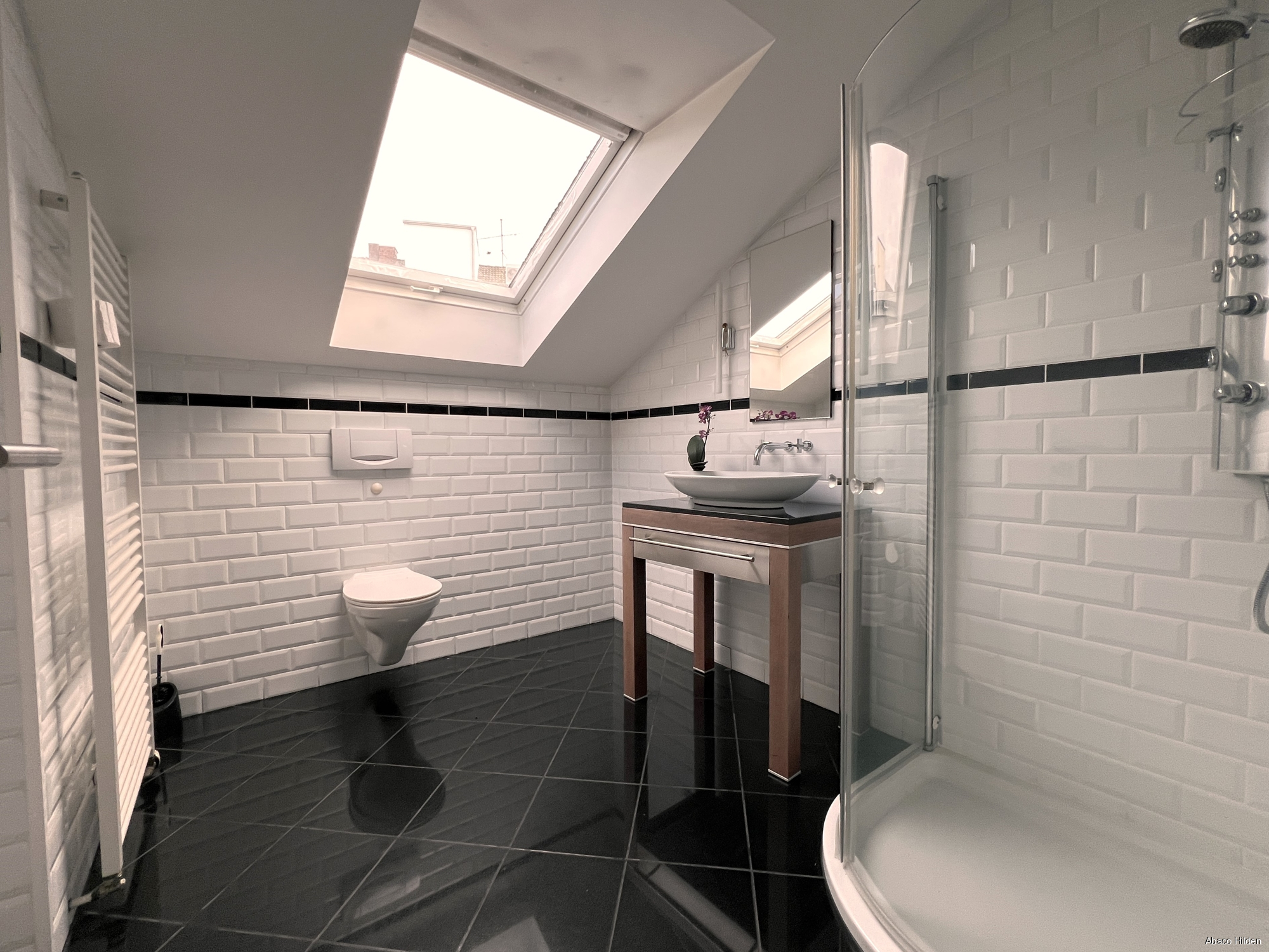 Die zweigeschossige hell verputzte Liegenschaft befindet sich in einem guten Erhaltungszustand. Das Hauptgebäude ist über einen Haupt- und Nebeneingang zu erreichen und die weißen Kunststofffenster sind isolierverglast. Die Beheizung und Warmwasseraufbereitung erfolgt über eine Gaszentralheizung, unterstützt im Wohn- und Esszimmer durch einen edlen eingebauten Kaminofen (s. Fotos). Die Loftwohnung ist im oberen Bereich mit einem großen Glasdach ausgestattet und einer großen Terrasse, die an einer Galerie anschließt (s. Pläne). Großzügig angelegte Bäder schließen die elegante Loft ab, ebenso die Küche im Erdgeschoss.