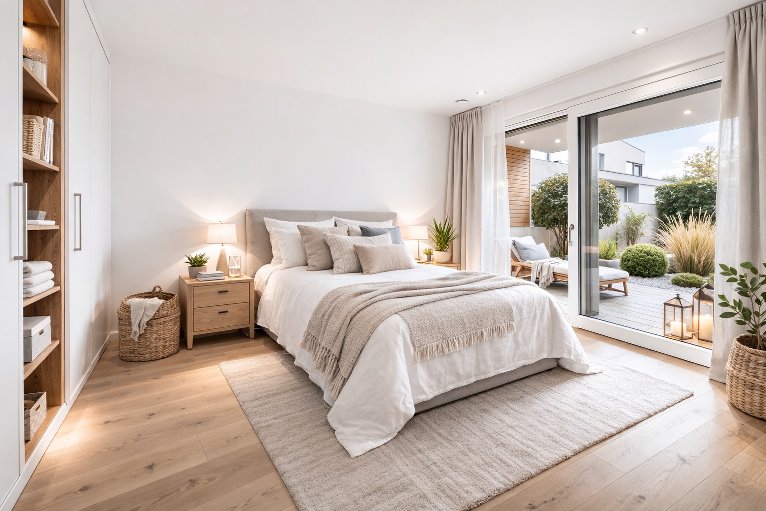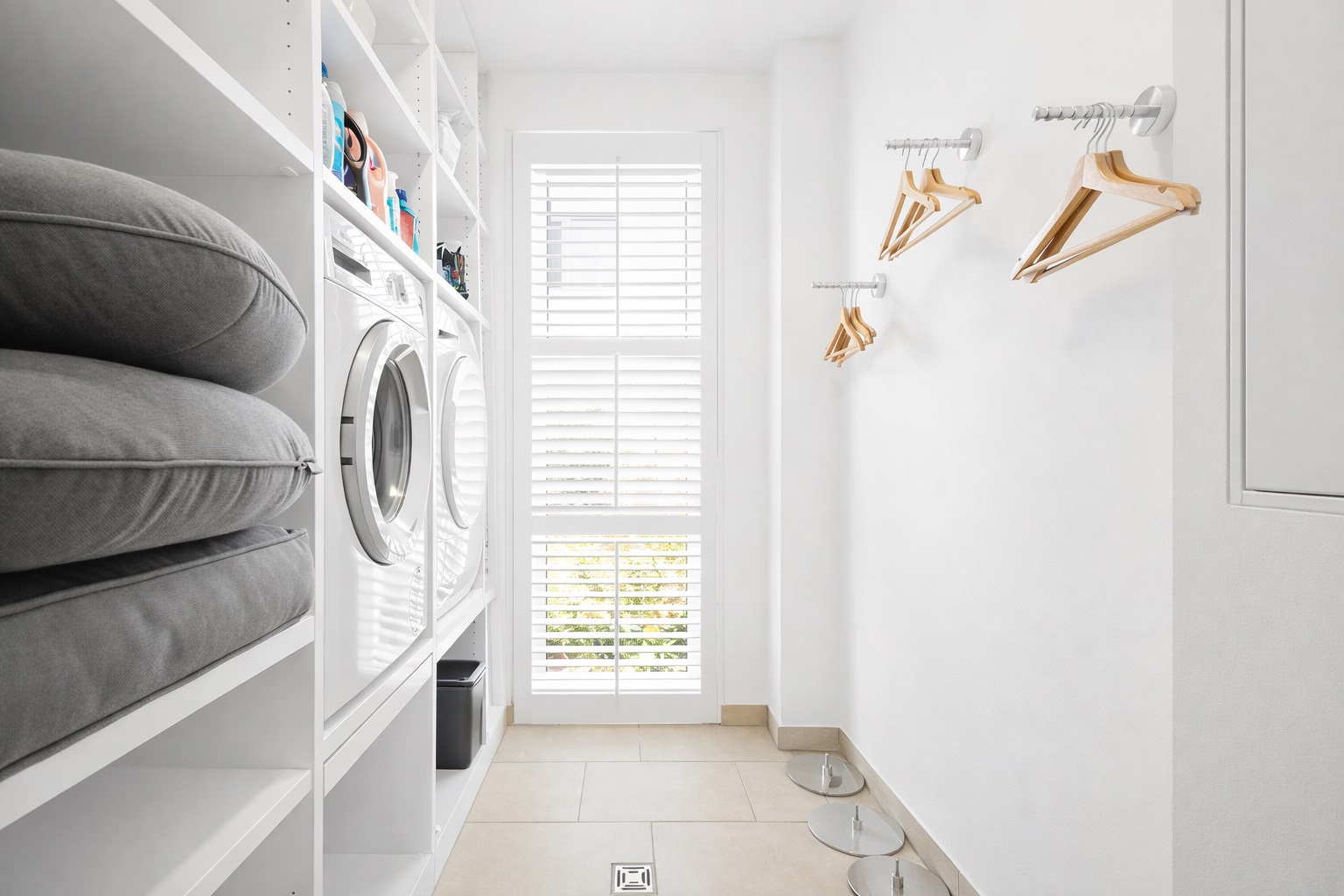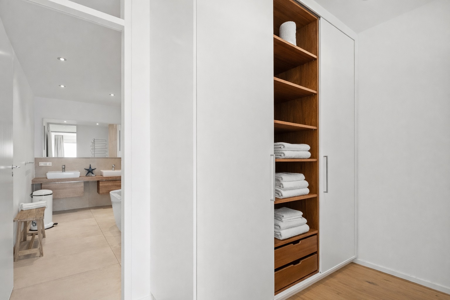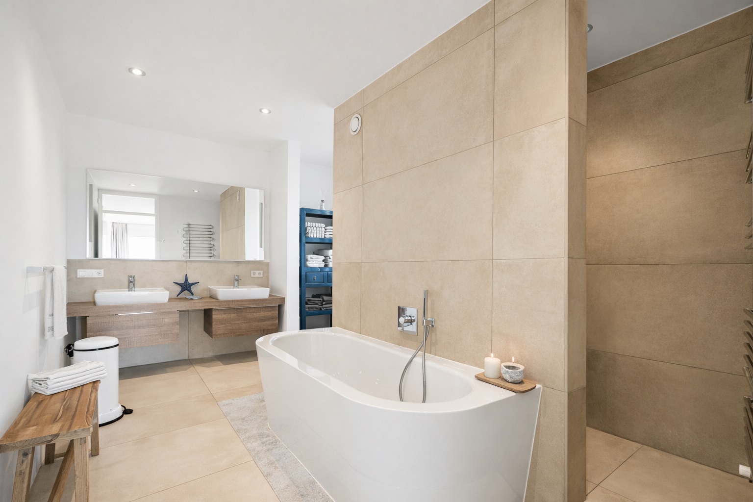 Ein weiteres Highlight ist der Master Bedroom mit angrenzender Ankleide nach Maß und einem luxuriösen, großzügigen Badezimmer mit Badewanne und Dusche, das keine Wünsche offenlässt. Die stilvoll gestaltete Gästetoilette und ein großer Hauswirtschaftsraum mit maßgefertigten Einbauten sorgen für zusätzlichen Komfort.