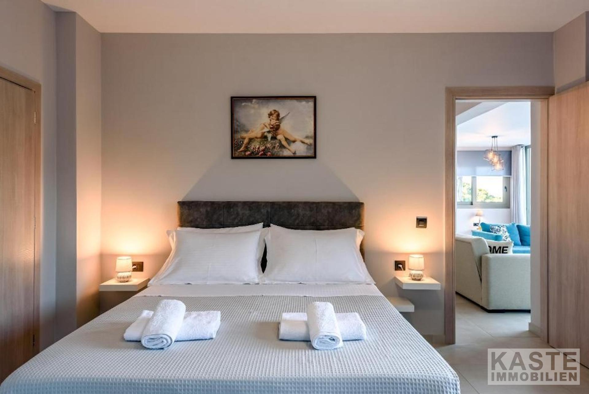 In unmittelbarer Nähe finden sich gleich mehrere wunderschöne Strände: - Stalos Beach – feinsandig, flach abfallend und ideal zum Schwimmen - Agia Marina Beach – lebendig, mit Strandbars und Wassersportmöglichkeiten - Platanias Beach – weitläufig, mit herrlichem Blick auf die Insel Agioi Theodoroi